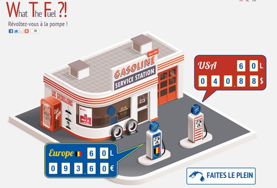Le prix de l’essence ne cesse d’augmenter au fil des mois et des années. Pour sensibiliser le public et lutter contre cette inflation, un collectif de citoyens a décidé de créer un site Internet sur lequel il est possible de comparer les prix entre la Belgique et les Etats-Unis et de partager l’info sur les réseaux sociaux. Le site en question, nommé What the Fuel, en référence à What the fuck (quel est le problème ?), permet de “faire le plein” en appuyant sur un bouton, et de constater ainsi la différence de prix énorme entre les deux pays. En Belgique, faire le plein coûte environ 93,6€. Aux Etats-Unis, cela dépasse tout juste la barre des 40$, soit à peu près un tiers du tarif européen standard. Le collectif à l’origine de ce site n’est autre qu’un groupe d’internautes indignés qui “en ont assez d’entamer la semaine de travail par un plein d’essence à 100€.” Avec leur site, ils espèrent sensibiliser le public, et surtout répandre l’indignation grâce au partage sur les réseaux sociaux. La comparaison avec les Etats-Unis permet de rendre “la dépense encore plus grossière qu’elle ne l’est déjà” expliquent-ils. Et lorsqu’on leur demande pourquoi avoir pris une telle initiative, c’est de l’inquiétude qui ressort. Ainsi, le collectif espère que le pétrole ne deviendra pas un bien “exclusivement destiné aux riches” et ne ruinera pas le pouvoir d’achat des citoyens. Il estime qu’il est grand temps que le gouvernement plafonne la montée des prix du carburant et mette tout en œuvre pour répandre de nouvelles alternatives, économiques comme écologiques. Les différentes personnes impliquées dans le projet demandent de la part du gouvernement plus de transparence et quelques explications sur la différence de prix entre la Belgique et les Etats-Unis. Ils tentent également d’apporter quelques solutions au problème, en proposant de “limiter la taxe sur les carburants et sur le véhicule en général (système de cliquet inversé insuffisant ?), et d’accélérer la mise en place des infrastructures permettant l’utilisation des véhicules électriques.” Pointer le problème du doigt n’est cependant pas la solution. Pour y arriver, il faut obtenir l’attention du public. “Si le citoyen manifestait de l’intérêt pour cette cause, on pourrait mettre la pression sur le gouvernement” explique le porte-parole du groupe. “Inviter les marques automobiles à nous accompagner dans nos démarches et à mettre leurs alternatives en évidence” est également l’un des autres objectifs du collectif, qui compte déjà quelques membres et le soutien d’une petite communauté. Reste à présent à voir s’ils parviendront à être assez nombreux pour avoir du poids et faire passer le message. Si vous souhaitez vous-aussi y participer, rien de plus simple puisqu’il suffit d’envoyer le message sur les réseaux sociaux avec les différents boutons situés en-dessous du titre. On en parle sur le forum.