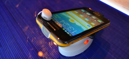 Présenté au Mobile World Congress de Barcelone, le Samsung Galaxy Beam est un smartphone qui présente la caractéristique de pouvoir projeter son écran sur une surface plane grâce au vidéoprojecteur embarqué. Hier, nous avons pu l’approcher à Bruxelles au cours d’un événement organisé par Samsung. Tournant bien entendu sous Android, le Galaxy Beam est un smartphone de 4″ double-coeur disposant d’un processeur d’1 Ghz, d’1 Go de mémoire vive et de 8 Go de mémoire. En plus de disposer de deux appareils photos numériques (un en façade, d’1,3 mégapixels, et un à l’arrière de 5 mégapixels), il présente la particularité de disposer d’un picoprojecteur. Ce dernier, semblable en réalité à un vidéoprojecteur traditionnel, permet de projeter l’image de l’écran du smartphone sur une surface plane. Bien sûr, cela ne marche pas à une très longue distance. Pour avoir un bon résultat, mieux vaut se tenir à un mètre ou deux du mur. La résolution ayant tendance à diminuer drastiquement au fur et à mesure qu’on s’écarte de la surface d’affichage, il ne fait aucun doute que l’appareil n’est pas destiné à des présentations publiques. Comme gadget, le Galaxy Beam nous a semblé être un outil intéressant, et surtout très geek dans l’âme. L’ennui, c’est qu’il est difficile d’y trouver un intérêt pour le grand public. Pourtant, ce ne sont pas les fonctionnalités qui manquent, à l’image de l’utilisation de la caméra pour projeter par exemple des documents qu’on place en-dessous. Encore une fois, l’idée est sympathique, mais la résolution très moyenne de l’écran une fois agrandi au mur rend finalement cette option très discutable. En revanche, la luminosité de l’appareil semble optimale et permet d’avoir une image claire même lorsqu’on n’est pas dans le noir.Tout porte à croire que le picoprojecteur intégré s’adresse finalement beaucoup plus aux professionnels voire aux animateurs qui souhaitent en l’espace d’une seconde montrer une vidéo, un document ou un image à des collègues, un groupe d’étudiants ou leur patron. L’appareil en lui-même semble en tout cas bien parti pour faire parler de lui. Ses caractéristiques nous ont en tout cas plutôt convaincus et portent à croire qu’il s’agira d’un bon milieu de gamme. Nul doute que Geeko et Belandroid reviendront dessus une fois le portable dans les bacs. On en parle sur le forum. Médias rapportés par Etienne Froment pour Geeko.