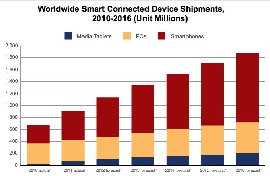 Selon une étude réalisée par le cabinet IDC, on devrait retrouver plus de terminaux Android que d’ordinateurs tournant sous le système Windows. Avec un total de 916 millions d’appareils commercialisés, les smartphones, tablettes et PC auraient permis de générer près de 489 milliards de dollars. Du côté d’Android, IDC annonce que le nombre d’appareils tournant sous l’OS de Google devrait continuer d’augmenter, et ce au moins jusqu’en 2016. Le cabinet d’étude prévoit 1,1 milliard de terminaux Android vendus en 2012. Ce chiffre pourrait passer à 1,89 milliard dans les quatre ans. IDC ne s’attend pas à une saturation du marché. Certains marchés et particulièrement la Chine auront boosté les ventes de ces appareils. Selon Tom Mainelli, directeur de la recherche du département Mobile Connected Devices : « la croissance d’Android est directement liée à celle des appareils d’entrée de gamme ». Cependant, tous les constructeurs ne pourront pas parvenir à des bénéfices dans ce secteur. Autres chiffres intéressants, le pourcentage d’appareils tournant sous Microsoft devrait décroître dans les prochaines années (35,9% en 2011 ; 25,1% en 2016). Tandis qu’Android passerait de 29,4% à 31,1%. En ce qui concerne iOS ce chiffre devrait passer de 14,6% à 17,3%. On en parle sur le forum