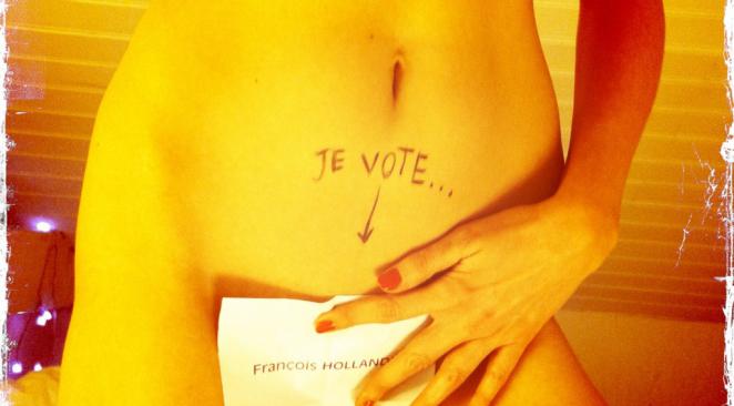 Frédérique Bel, actrice plus connue sous le doux sobriquet de “Dorothy Doll” pour son rôle de blonde stéréotypée lors des sketches qu’elle réalisait jadis sur Canal +, a affiché sans gène aucune son soutien à François Hollande. Pour prouver son Une incitation au vote socialiste pour la moins originale. Photo prise sur le site d'atlantico.fr affiliation au Parti socialiste, elle s’est récemment affichée sur twitter avec un cache-sexe représentant un bulletin de vote et qui porte le nom du candidat socialiste. Petit bémol : la photo sur laquelle on peut admirer ce dévouement électoral un peu osé a été censurée. La jolie blonde, dont la carrière s’étend désormais au cinéma, s’est ainsi exprimée sur le site d’Atlantico.fr : “J’ai mobilisé mon « corps électoral » pour soutenir François Hollande. C’est un acte artistique et politique. J’avais envie de motiver un peu les troupes. Le casting de la campagne est tout de même assez sinistre, pas très glamour. Cela manquait un peu d’un côté « sexy rigolo ». Mais c’est surtout une manière de m’amuser. « François Hollande » est écrit en tout petit sur le bulletin de vote, les gens sont obligés de regarder au plus près la photo.” C’est très vite que la comédienne a été confrontée à la censure : “Au bout de quelques heures, je me suis fait éjectée de Twitter pour attentat à la pudeur. Je n’ai rien reçu de particulier, ils ont tout simplement bloqué mon compte. J’ai vu tous mes followers disparaitre car je n’ai même plus le droit de tweeter.“