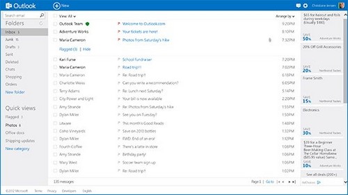 Né en 1996, Hotmail est rapidement parvenu à s’imposer comme un service-phare sur le net, capable de s’adapter très rapidement au marché et d’oser l’originalité. Hotmail en 1996, dans sa première refonte. Lors de sa naissance en 1996, Hotmail était non seulement l’une des premières messageries de la toile, mais aussi et surtout l’une des premières messageries gratuites. Ce que beaucoup de gens ignorent, c’est que lors de sa création, Hotmail n’avait pas grand chose à voir avec Microsoft. Il s’agissait en réalité d’une start-up lancée par deux passionnés d’informatique, qui vendront leur boite 1 an et demi plus tard à Microsoft après avoir enregistré plusieurs millions d’inscriptions. Au fil des années, Hotmail gagnera plusieurs dizaines de millions d’abonnés pour s’imposer progressivement comme la plate-forme de messagerie la plus populaire du net. Microsoft tentera de renommer le service à plusieurs reprises (MSN Hotmail, dès 1998), pour finalement opter pour un nouveau design et intégrer le célèbre papillon MSN dès 1999. MSN Hotmail en 2000 Le service commencera réellement à évoluer à partir du début des années 2000, en adoptant tout d’abord un look beaucoup plus moderne pour ensuite être renommé en “Windows Live Mail” à partir de 2005. Au début des années 2000, Hotmail arbore un look beaucoup plus moderne. Au fil des années, Microsoft modifiera régulièrement le fonctionnement de sa messagerie, faisant passer sa taille de 2 Mb à 5 Gb avant d’intégrer SkyDrive, sa plate-forme de sauvegarde Cloud qui sera au centre de Windows 8. En 2009, Microsoft proposera une nouvelle version du site intégrant de nombreuses nouveautés majeures, comme la programmation d’alertes email dans le calendrier, l’intégration de la messagerie instantanée ou la fonction Ranger. La firme rattrapera également un peu le retard pris sur la concurrence, sans réellement bouleverser son écosystème. La version de 2009 représente une évolution importante pour Microsoft. Au fil des années, Microsoft perd néanmoins des parts de marché, face à des concurrents qui n’hésitent pas à jouer des coudes. Avec Android, Google booste sa base de données en obligeant les membres de se créer une adresse Gmail. Petit à petit, les effets se font ressentir pour Microsoft et Yahoo, qui se doivent de réagir pour rester à la mode. La bataille se joue sur plusieurs terrains : smartphones, tablettes, navigateurs, messageries, et oblige Microsoft à oser l’originalité pour sortir du rang. Sous une nouvelle direction, la firme de Redmond présente Windows 8 et son design Metro, inspiré de Windows Phone 7. Petit à petit, le code graphique de Metro devient la nouvelle norme et influence le design d’Hotmail, jusqu’à la création d’Outlook.com, nouvelle plate-forme de messagerie de Microsoft, qui tourne une page importante de l’histoire de Microsoft. Outlook.com a été beaucoup influencé par l'interface Metro de Windows Phone 7. [ Source : Microsoft ]