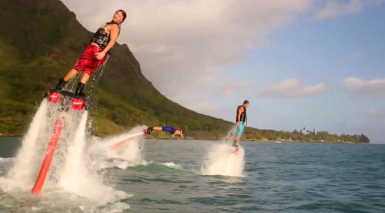 Si le jetpack passionne les amateurs de science fiction depuis la seconde moitié du vingtième siècle, il n’est pas le seul rêve de gosse à prendre forme. Le flyboard, déclinaison aquatique du jetpack, pourrait devenir l’une des grosses tendances de 2013-2014 dans les stations balnéaires… © DR Si vous avez toujours rêvé de vous équiper de l’un de ces gadgets aperçus dans un épisode de James Bond, vous ne pourrez sans doute que vous enthousiasmer à la vue du Flyboard. Présenté en 2011, le Flyboard revient en force et pourrait même devenir l’une des grosses tendances de l’été dans les stations balnéaires. Il faut dire que ce cousin éloigné du jetpack a plus d’un tour dans son sac pour convaincre les amateurs de sensations fortes. Beaucoup moins cher à produire qu’un prototype de jetpack, moins dangereux également et beaucoup plus simple à manipuler, le flyboard est une discipline qui fait déjà sensation aux Etats-Unis. Conçu initialement pour fonctionner sous l’eau, cet étrange système de propulsion a beaucoup évolué depuis le premier prototype. Grâce à son système de propulsion situé sous les pieds de son utilisateur, et son système de stabilisation, le Flyboard permet de se déplacer naturellement dans un environnement aquatique, en plongeant dans les profondeurs à toute vitesse et en ressortant de l’eau tel un dauphin au beau milieu d’une attraction pour touristes. Déjà disponible à la vente, le Flyboard est commercialisé au tarif de 6.495$. Un prix qui peut paraître relativement élevé mais qui reste “abordable”, tant pour les sportifs fortunés que pour les stations balnéaires. Pour pouvoir en faire l’acquisition; un cours pratique de trois heures doit être dispensé. Celui-ci coûte un supplément de 350 dollars.Stimulant, le Flyboard a déjà bénéficié de multiples couvertures médiatiques, que ce soit en apparaissant dans des spectacles sons et lumières à Las Vegas ou en s’invitant sur les plateaux de télévision… Plus d’informations sur le flyboard à cette adresse. On en parle sur le forum.