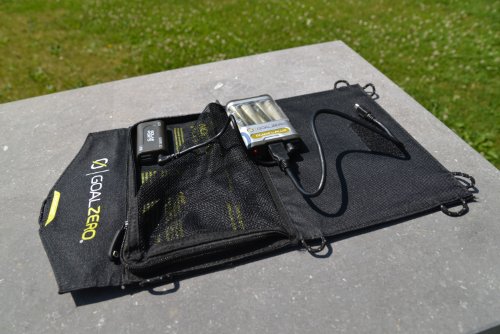 Vendu au prix de 159€, le Guide 10+ permet aux randonneurs, sportifs et voyageurs de ne plus dépendre de leurs étapes pour recharger leur matériel électronique. A l’aide d’un double panneau solaire et d’un se de batteries, il est désormais possible de recharger en pleine nature son smartphone, sa tablette et son appareil photo. © E.F. Vendu au prix de 159€, le Guide 10+ se veut le kit idéal pour tous les aventuriers en herbes, voyageurs et amateurs de sensations fortes, qui aiment cependant avoir leur confort une fois en pleine nature. Composé de deux éléments : un double panneau solaire et un set de batteries, le kit permet de recharger en quelques heures seulement ses différents accessoires, et ce, que cela soit en différé ou en instantané. Le Guide 10+ s’installe en toute simplicité sur le panneau de bord dans la voiture, sur le sac à dos ou à côté de son campement et charge progressivement le Power Pack, un set de 4 piles AA qui stocke l’énergie solaire accumulée et permet ensuite de recharger les différents appareils de la manière souhaité. Il est par exemple possible d’utiliser les piles directement dans son appareil photo, ou au contraire de les laisser bien en place et d’utiliser le câble de sortie USB pour charger son smartphone ou sa tablette. Léger, efficace et peu encombrant, le Guide 10+ est également très simple à utiliser puisqu’il suffit de relier le set de batteries au port solaire et l’appareil à recharger aux batteries, par simple câble USB, pour commencer le rechargement. © E.F. Pour rendre le tout encore plus pratique, Goal Zero n’a pas hésité à introduire une petite poche, qui permet de glisser à la fois le set de batteries et l’appareil à charger (smartphone ou appareil photo). Idéal lors des déplacements! Selon le fabricant, le Guide 10+ permet de charger avec une seule recharge 3 fois le même smartphone, ce qui donne une bonne autonomie. Pour ceux qui trouveraient cela insuffisant, il existe un super-kit Sherpa à 499€ qui permet lui de recharger son ordinateur portable en voyage et offre une meilleure autonomie encore. A l’inverse, le Switch 8, vendu à seulement 49,90€, permet de recharger une fois son smartphone. Beaucoup plus léger, il s’adapte facilement aux besoins des étudiants et des utilisateurs qui n’ont pas besoin de disposer d’un super-chargeur en permanence avec eux. © E.F. Le Kit Guide 10+ de Goal Zero sera bientôt disponible dans le commerce en Belgique, au prix indicatif de 159€.