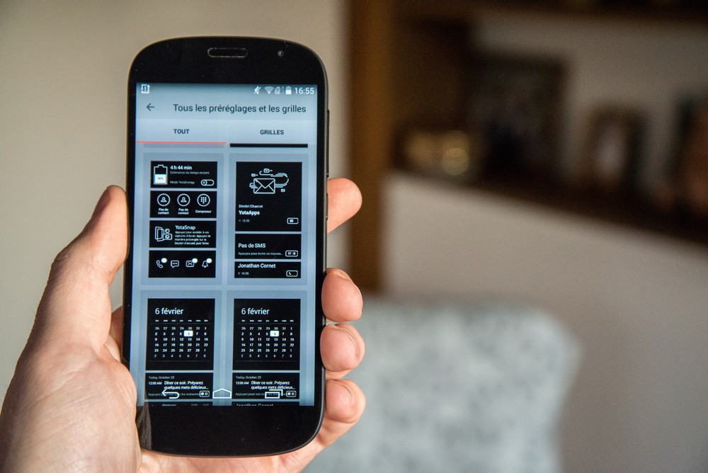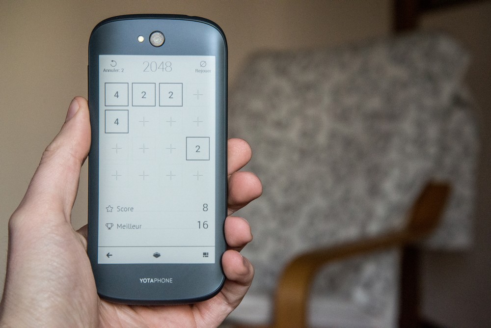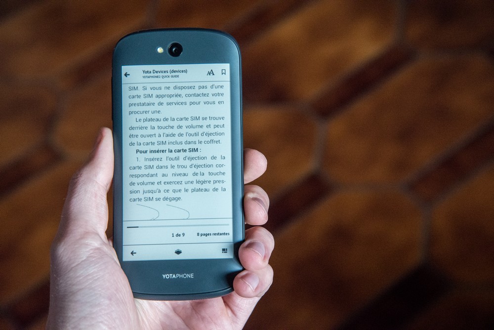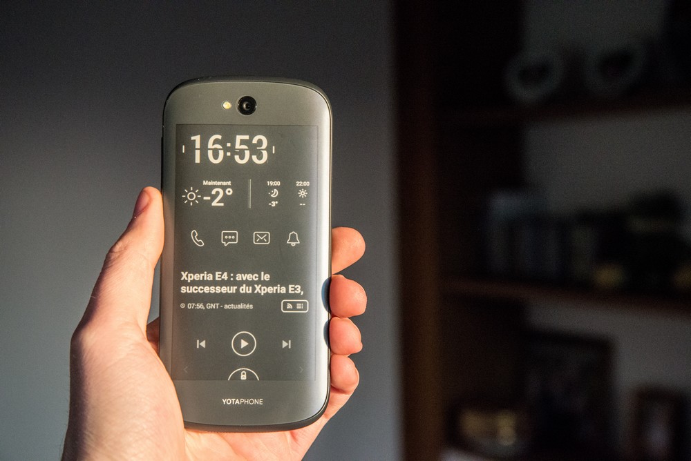 Venu de Russie, le Yotaphone 2 améliore le concept du premier smartphone à double-écran grâce à son écran e-ink intégré à la coque du terminal, qui permet de personnaliser son smartphone, mais aussi de tripler son autonomie. Le second écran est intégré à la coque du smartphone. © E.F. Produit innovant, mais qui manquait globalement de finition, le premier Yotaphone n’a jamais été commercialisé sur le territoire européen. Le fabricant de smartphones russe n’a pourtant pas abandonné le concept révolutionnaire de son smartphone à double-écran puisqu’il nous revient aujourd’hui avec le Yotaphone 2. Au premier regard, le Yotaphone 2 est un smartphone tout ce qu’il y a de plus banal, avec un design “arrondi” à la fois élégant et efficace, une interface Android dépouillée qui le rapproche de l’expérience “Nexus”, un verre Gorilla Glass 3 qui protège efficacement l’écran du smartphone et des spécifications comparables à ce qu’on retrouve dans le haut de gamme, avec notamment un écran de 5″ Full HD qui offre une densité de pixels sensiblement supérieure à celle du Galaxy S5, un processeur Snapdragon 800 cadencé à 2,2Ghz et épaulé par 2 Go de RAM, 32 Go d’espace de stockage et deux APN, de respectivement 8 et 2 mégapixels. En tournant l’appareil, l’utilisateur découvre le véritable argument de vente de ce smartphone pas comme les autres… Un second écran révolutionnaire Le smartphone russe parvient à se démarquer de ses concurrents au niveau de sa conception, puisqu’il embarque dans sa coque un second écran e-ink, tactile, qui permet de personnaliser sa coque avec l’image de son choix, affiche l’heure, la température extérieure, un flux RSS, et permet même d’accéder à certaines fonctionnalités une fois l’écran e-ink débloqué. Ainsi, il est possible de passer des appels, envoyer des SMS, consulter ses emails, jouer à 2048, aux échecs et aux dames, consulter les dernières infos et bien sûr lire des ebooks sans devoir allumer l’écran principal. Réactif, l’écran e-ink utilise une technologie similaire à celle qu’on retrouve sur les liseuses de type Kindle. Une technologie qui permet de laisser l’écran allumé en permanence et augmente considérablement l’autonomie du smartphone, puisque vous pouvez désormais accéder à la plupart des fonctionnalités de votre smartphone depuis l’écran noir et blanc du terminal. Pratique, sauf bien sûr pour regarder des vidéos sur Youtube, jouer à Asphalt 8 ou surfer sur la toile! Là où cela devient intéressant, c’est dans le fait que cet écran e-ink est non-seulement très facile à configurer, mais permet également de personnaliser à l’extrême son smartphone, en choisissant quelle image apparaît en fond d’écran, quelles fonctionnalités sont accessibles depuis les écrans secondaires (auxquels vous accéderez en faisant glisser votre doigt de droite à gauche de l’écran), et même de choisir les différents éléments de chaque page. En s’habituant à utiliser régulièrement ce second écran on remarque que l’autonomie du smartphone permet de tenir facilement 2 à 3 jours avec une seule charge. Utilisé de manière “normale”, le smartphone ne tiendra en revanche pas plus d’une journée. L’écran est assez réactif pour jouer aux échecs Jouer à 2048 sur un écran e-ink… Il est possible de personnaliser l’écran e-ink. Certaines applis sont entièrement dédiées au second écran. Il est parfait pour lire un ebook. L’écran secondaire permet d’afficher de nombreuses infos Idéal pour le selfie Autre fonctionnalité intéressante : si l’appareil dispose bien d’un APN frontal de 2 mégapixels, qui sera utilisé pour converser sur Skype, c’est bel et bien l’APN de 8 mégapixels, situé au-dessus de l’écran e-ink qui sera utilisé pour prendre des selfies. Si l’aperçu qui s’affiche sur l’écran e-ink ne permet pas d’apprécier les couleurs qui apparaîtront sur la photo finale, il permet néanmoins de soigner la capture et surtout d’utiliser l’APN de 8 mégapixels pour des selfies d’une qualité nettement supérieure à ce qu’on trouve chez la concurrence. Pour la photo standard en revanche, le Yotaphone 2 ne brille pas vraiment, la faute à un capteur qui peine à convaincre en basse luminosité, et à un nombre de pixels “limité” face à la concurrence. Quelques regrets Bien sûr, difficile de contenter tout le monde lorsqu’on ose l’innovation. Si le Yotaphone 2 impressionne avec des fonctionnalités innovantes et des performances qui lui permettent de s’imposer comme une très bonne alternative au HTC One M8 ou au Galaxy S5, le smartphone russe souffre de quelques petits défauts mineurs et notamment de l’absence d’un port microSD. Certes, les 32 Go d’espace de stockage donnent déjà une bonne marge de manœuvre, mais on aurait aimé pouvoir aller plus loin. Même topo pour ce qui est de la connectivité du terminal, qui devra se contenter du réseau 3G. Enfin, pas d’Android 5.0 à l’horizon, le Yotaphone 2 étant livré avec une version antérieure du système d’exploitation de Google (Android 4.4.3). L’écran principal offre une très haute densité de pixels. – © E.F. Conclusion Riche en fonctionnalités, le Yotaphone 2 parvient à se démarquer des autres smartphones au niveau de sa conception, puisqu’il intègre un second écran, en noir et blanc, dans sa coque. Tactile, celui-ci permet de personnaliser sa coque, mais aussi d’accéder à certaines fonctionnalités du smartphone. Idéal pour lire, l’écran du Yotaphone 2 offre un confort de lecture comparable à une liseuse, en plus de tripler l’autonomie du smartphone. Un argument de vente plutôt intéressant pour le consommateur, qui aura tôt fait de mesurer l’intérêt de disposer d’un second écran… Attention néanmoins, car le Yotaphone 2 n’est pas encore disponible à la 