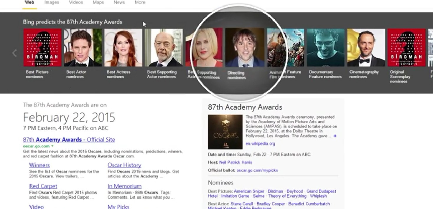 L’algorithme de prédiction de Microsoft continue de faire parler de lui avec une nouvelle réussite à ajouter à son palmarès. Sur les 24 nominations, Microsoft avait correctement deviné le nom de 20 acteurs, réalisateurs & films nominés dimanche lors de la cérémonie des Oscars. Rendu célèbre pour avoir correctement prédit les vainqueurs de la plupart des matchs de la Coupe du Monde 2014, l’algorithme de prédiction de Microsoft a également prouvé son efficacité dans le domaine culturel. Cette année, il avait ainsi correctement prédit 20 des 24 nominations aux Oscars. On citera ainsi des déductions correctes pour l’Oscar du meilleur film (Birdman), du meilleur acteur pour Eddie Redmayne, pour son rôle dans le film The Theory of Everything, du meilleur second rôle masculin pour J.K. Simmons dans le film Whiplash, de la meilleure actrice à Julianne Moore pour son rôle dans Still Alice et du meilleur second rôle féminin à Patricia Arquette, qui jouait l’un des rôles principaux dans Boyhood. Conçu par le chercheur David Rothschild, qui travaille chez Microsoft Research, l’algorithme de prédiction analyse de nombreuses données recueillies par le moteur de recherche Bing, et les compile pour avancer ses prédictions. Les internautes peuvent y accéder en utilisant soit Bing, soit l’assistant vocal de Microsoft, Cortana.