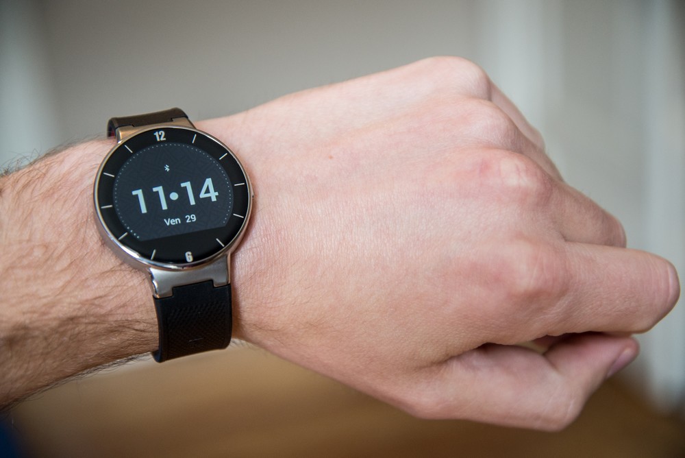 Arrivé assez tardivement sur le marché des montres connectées, Alcatel OneTouch a fait le pari assez audacieux de développer son propre OS. Sa première montre, l’Alcatel OneTouch est plutôt une bonne surprise. Niveau design, la Watch se rapproche beaucoup de la Moto 360 – © E.F. De plus en plus actif sur le segment des mobiles, Alcatel OneTouch mise désormais sur les wearables pour diversifier ses activités. Le fabricant chinois vient d’ailleurs de lancer sa première smartwatch, la Watch, vendue à moins de 130€. Compatible à la fois avec l’iPhone (=>iOS 7) et les terminaux Android (=> Android 4.3), la Watch a certainement plus d’un atout dans sa manche pour séduire le consommateur. Tout d’abord, il y a son prix de vente, nettement inférieur à celui de l’Apple Watch, de la montre Pebble Time et de la plupart des modèles Android. Ensuite, son design est également une franche réussite. Reprenant le modèle circulaire de la Moto 360, la Watch dispose d’un joli cadre métallique et d’un bracelet en plastique très agréable à porter. Visuellement, le résultat est plutôt impressionnant pour un modèle aussi bon marché, et il sera sans doute difficile de trouver mieux à moins de 250 euros. De plus, le fabricant joue la carte de l’efficacité, puisqu’au lieu de disposer d’un port microUSB classique, la Watch intègre directement un USB dans son bracelet, qui permet de recharger sa montre en la branchant directement – sans câble donc – à son PC ou à un chargeur USB. Enfin, on apprécie également la simplicité avec laquelle on peut coupler la montre avec son smartphone, grâce à une application particulièrement bien conçue, qui permet également d’accéder à toutes les statistiques recueillies au cours de la journée. Nombre de pas, calories dépensées, distances parcourues, course, durée des déplacements et sommeil sont au programme. A cela s’ajoutent les fonctionnalités smart telles que le réglage des alarmes, les modifications de fond d’écran (avec une bonne quinzaine de modèles à disposition, les notifications et l’accès aux paramètres. Niveau personnalisation, il est possible d’opter entre trois modèles de cadran, avec au choix une horloge ou des chiffres, auxquels viennent s’ajouter une quinzaine de thèmes personnalisables, pour changer le fond d’écran. Globalement, cela devrait être largement suffisant pour le commun des mortels, d’autant plus que OneTouch propose de personnaliser davantage sa montre en sélectionnant une image stockée sur son smartphone comme fond d’écran. Si l’on atteint pas le niveau de customisation de la montre Pebble, la atch s’en sort néanmoins avec les honneurs. L’interface rappelle celle de Windows 8 – © E.F. Si les premières impressions sont plutôt bonnes, on regrettera en revanche que l’ajustement de la montre soit aussi complexe et que la qualité du système de fermeture laisse à désirer. Il vous faudra sans doute une bonne dizaine de minutes pour ajuster correctement le bracelet autour de votre poignet. La bonne nouvelle, c’est qu’une fois cette étape achevée, vous ne devrez plus vous en préoccuper… Globalement, la Watch se révèle être un accessoire relativement pratique, aux fonctionnalités néanmoins nettement moins évoluées que l’Apple Watch ou Android Wear. Idéale pour les sportifs amateurs, qui pourront utiliser son capteur de pulsations pour évaluer leur rythme cardiaque, et consulter leurs statistiques quotidiennes sur l’appli mobile, la montre se révèle nettement moins convaincantes pour ses fonctionnalités “smart”. Si la lecture des notifications est possible, il est en revanche impossible d’y répondre directement. De la même manière, vous ne pourrez ni passer d’appels, ni installer des applications dédiées. Certaines fonctionnalités de base sont néanmoins au programme, avec notamment la possibilité d’activer l’appareil photo de votre smartphone à distance, d’utiliser une boussole, de consulter la météo, de contrôler la tracklist de son smartphone, d’utiliser un chronomètre et de créer des alarmes. Bref, l’essentiel est là, et pour un prix aussi bas, il ne fallait sans doute pas s’attendre à davantage. Ceci étant dit, pour la vaste majorité des consommateurs, les fonctionnalités intégrées à la montre devraient être largement suffisantes au quotidien. Paradoxalement, si la montre d’Alcatel OneTouch s’en sort plutôt bien au niveau des fonctionnalités intégrées, les contrôles ne semblent pas avoir fait l’objet de beaucoup d’attention. La plupart du temps, il vous faudra répéter un geste plusieurs fois avant que celui-ci ne soit pris en compte. C’est en tout cas le cas pour l’accès au menu principal. Dommage, car sans ces petits inconvénients, la Watch aurait sans doute été un très bon compromis entre une montre connectée au design premium et un modèle low-cost. Dernière note, plutôt importante, la batterie tient environ deux jours avec une seule charge, ce qui entre plutôt dans la moyenne. Enfin, pour ceux qui le souhaitent, un modèle doté d’un bracelet en métal est également proposé. Celui-ci n’est néanmoins pas interchangeable… Plusieurs applis sont préinstallées, dont la météo. – © E.F. Conclusion Malgré quelques petits défauts, la montre d’Alcatel OneTouch parvient à tirer son épingle du jeu grâce à son design élégant, son prix attractif et son interface très agréable à manipuler. Si l’on regrettera des contrôles parfois approximatifs, un système de fixation mal-pensé et un manque de fonctionnalités, la plupart des utilisateurs devraient y trouver leur compte, à un tarif plus de trois fois inférieur à celui de l’Apple Watch.