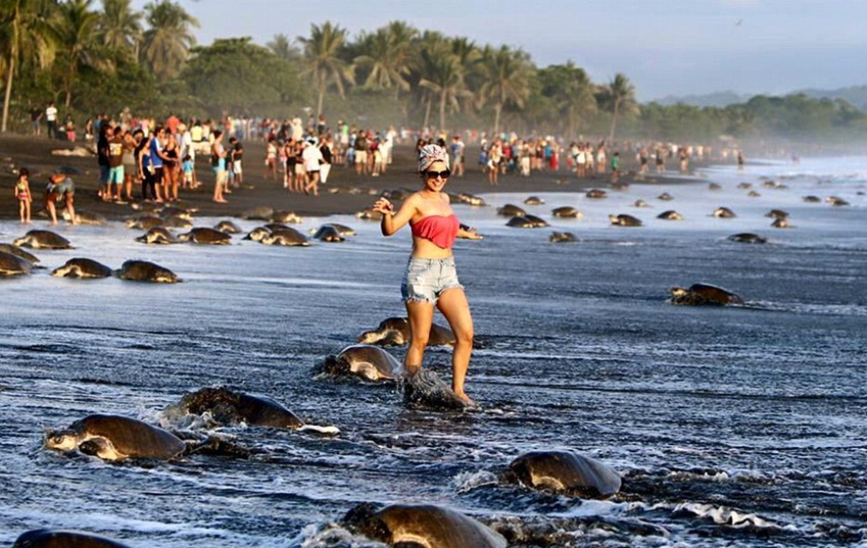 Emmenés par des tours-opérateurs peu scrupuleux, des centaines de touristes ont ruiné les espoirs de survie des tortues olivâtres en venant interrompre la phase de ponte des animaux pour ramener quelques selfies de leurs vacances au Costa-Rica. Crédit photo : DR Des centaines de touristes, emmenés par des tour-opérateurs pour assister à la ponte des tortues olivâtres sur la plage Ostional, principal lieu de reproduction de l’espèce, ont profité de leurs vacances pour se photographier en compagnie de ces animaux très farouches. Les autorités locales, qui n’avaient pas prévu de voir débarquer un tel attroupement de touristes, n’ont pas pu empêcher les touristes de ruiner la ponte des tortues, qui sont pour la plupart reparties en mer sans avoir le temps de venir pondre leurs yeux sur le sable fin. Selon les quelques agents de protection de l’environnement qui ont tenté d’interrompre le raz de marée de touristes, certains visiteurs ont été jusqu’à photographier leurs enfants sur le dos de tortues, traumatisant les paisibles animaux qui sont très farouches sur la terre ferme. Le principal souhait des touristes était visiblement de ramener des souvenirs mémorables de leurs vacances, et en l’occurrence des selfies en compagnie des paisibles créatures. En réaction à ce fiasco, les autorités ont décidé de renforcer la sécurité sur la plage d’Ostional pour éviter que les touristes ne viennent perturber davantage la ponte des animaux. Si la survie de l’espèce n’est pas remise en question, le taux de naissance pourrait être nettement inférieur cette année en raison du traumatisme subi par l’espèce.