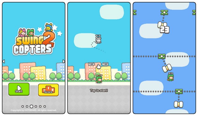 Vous vous souvenez sans doute de Flappy Bird, ce véritable jeu-phénomène à la difficulté surréaliste, qui avait beaucoup fait parler de lui lors de a sortie sur iPhone. Son créateur vient de lancer un nouveau jeu qui reprend dans les grandes lignes le concept du jeu originel. Swing Copters 2 reprend dans les grandes lignes le concept du premier Swing Copter, qui s’inspirait lui-même fortement de Flappy Bird. Concrètement, le joueur dirige un personnage du bout du doigt et doit tenter par tous les moyens d’éviter les pièges qui se dressent face à lui. A la différence de Flappy Bird, le joueur ne doit cependant pas faire évoluer son personnage horizontalement mais verticalement. Globalement, ceux qui ont pu s’essayer à Swing Copters remarqueront que ce second volet n’est pas si différent du premier. “Logique” selon le créateur du jeu, qui voulait initialement se contenter d’une mise à jour de l’application mais qui a finalement décidé d’en faire un nouvel épisode. Visuellement, Swing Copters a subi un léger lifting, les développeurs ont ajouté plusieurs personnages et un système d’achats in-app qui permet notamment de supprimer la présence d’annonces publicitaires dans le jeu. Et comme vous pourrez le voir dans la vidéo ci-dessous, la difficulté fait toujours partie intégrante de l’expérience… Télécharger Swing Copters 2 sur Android ou iPhone.