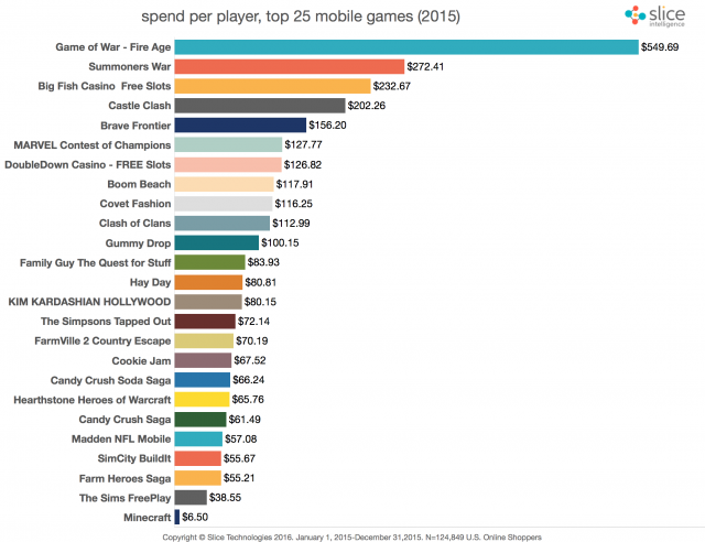 Vous avez certainement déjà entendu parler du jeu Game of War. Présent uniquement sur mobiles, ce jeu de stratégie vous propose de gérer votre empire et de partir à la conquête de nouveaux territoires en affrontant d’autres joueurs. Gratuit – à la base -, le titre intègre un système d’achats in-app qui fait très vite grimper la facture… Clairement mis en avant sur tous les réseaux sociaux grâce aux courbes généreuses de Kate Upton, le jeu de stratégie Game of War serait actuellement le jeu F2P (free-to-play) qui rapporterait le plus. Selon une enquête de Slice Intelligence, le joueur moyen dépenserait environ 549$ par an dans ce jeu de stratégie. Un montant astronomique qui s’expliquerait en grande partie par la présence d’achats in-app. Très intrusif, le système de micro paiements forcerait la main aux utilisateurs, qui ne se rendraient compte de leurs dépenses qu’à la fin du mois… Game of War serait de loin le jeu qui rapporterait le plus avec une moyenne de 549$ par joueur, contre 272,41$ pour Summoners War, 232$ pour Big Fish Casino et 202,26$ pour Castle Clash. Paradoxalement, les jeux les plus téléchargés ne seraient pas forcément ceux qui rapporteraient le plus, puisque selon l’étude les joueurs de Minecraft ne dépensent en moyenne que 6,5$, ceux des Sims Freeplay 38,55$ et ceux d’HearthStone 65,76$. Multipliez ces chiffres par le nombre d’utilisateurs actifs (40 millions pour HearthStone), et vous vous rendrez sans doute compte du succès de la formule Free-to-play!