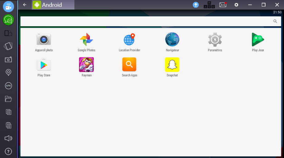 Grâce à des logiciels de machines virtuelles, il est possible de faire tourner des applications mobiles du système d’exploitation de Google, Android, sur son ordinateur. BlueStacks est le logiciel le plus populaire pour ce type d’émulation… Crédit : Capture d’écran Le principe de machine virtuelle ou d’émulateur n’est pas neuf. Dans le domaine du gaming, de nombreux joueurs n’hésitent pas à utiliser des émulateurs pour jouer à des jeux sortis sur d’anciennes consoles sur leur PC. La méthode fonctionne également avec Android. Émulateur d’applications pour PC En ce qui concerne les émulateurs spécialisés dans la simulation de système d’exploitation Android, on retrouve BlueStacks qui est gratuit et parfaitement légal. Sans passer par des techniques de hacking super sophistiquées, BlueStacks permet de tester les applications compatibles avec Android sur votre ordinateur. Au-delà des jeux qui ne sont pas disponibles sur PC – comme le très populaire Clash of Clans -, il est possible d’avoir accès à des applications qui ne sont disponibles que sur mobiles, comme Snapchat, WhatsApp, ou encore BlaBlaCar. Comment l’installer ? La marche à suivre pour installer le programme est assez simple. Il suffit de le télécharger sur le site officiel et de suivre les instructions. Une fois téléchargé, il faudra lancer le programme depuis l’ordinateur. Après avoir choisi la langue, il est demandé de renseigner votre compte Google. Cela a le mérite de donner un côté plus officiel et légal au logiciel. Installer le logiciel pas plus de quelques minutes. Dès le départ, on notera qu’il est possible de personnaliser le fond d’écran de la fenêtre principale, comme s’il s’agissait d’un smartphone. Crédit : capture d’écran Dans un premier temps, la page d’accueil est assez sobre. Deux applications principales ; Google Play et App Search qui permettent toutes deux de trouver et télécharger de nouvelles applications compatibles avec Android. Crédit : capture d’écran Sur la colonne de gauche, on retrouve déjà plusieurs fonctionnalités. On peut aussi « secouer » la fenêtre, ou prendre des photos et enregistrer des vidéos. En ce qui concerne les jeux, on peut passer par nos fichiers pour retrouver des fichiers APK à télécharger, copier/coller des objets, augmenter le son et, enfin, accéder à une option d’aide. En cliquant sur les petits carrés en bas de la page, on ouvre le menu sur lequel on peut voir quelques applications indispensables (Google Play) ou utilitaires (explorateur internet). Crédit : Capture d’écran Le téléchargement des applications est le même que sur smartphones Android, il suffit de rechercher le nom de celle-ci dans la barre de recherche de Google Play. Quand on l’a trouvé, il suffit de cliquer sur « installer » et d’attendre la fin du téléchargement. L’application apparaîtra sur le bureau. Il suffira alors de cliquer dessus pour la lancer. Le chargement peut être assez long suivant le poids de l’appli et les caractéristiques de votre PC. Il faudra souvent accepter certaines conditions liées à l’utilisation de l’application et de votre compte Google. D’ailleurs, il est possible de lier son propre compte Android à BlueStacks ce qui permettra une synchronisation des données. Cette fonctionnalité peut s’avérer pratique lorsqu’on met à jour son agenda ou qu’on avance dans un jeu. Pour la jouabilité, la souris ou les touches claviers remplissent parfaitement leur rôle pour remplacer les fonctions tactiles. Le point faible est le fait qu’il faut un ordinateur assez puissant, qui supportera l’émulateur et les téléchargements. D’ailleurs, les téléchargements sont assez longs. Il existe une version payante pour supprimer les publicités intempestives qui apparaissent durant les jeux, une vitesse supérieure et un service d’aide. Crédit : capture d’écran BlueStacks TV Dans la nouvelle version, une nouvelle fonctionnalité permet de synchroniser son compte Twitch pour diffuser ou visionner en direct des sessions de jeu sous Android avec le monde entier. L’utilisateur peut également lancer plusieurs applications ou jeux simultanément. Crédit : capture d’écran Globalement, utiliser un émulateur Android sur son PC n’a que peu d’intérêt, sauf si vous utilisez énormément des applications comme Snapchat ou Tinder…