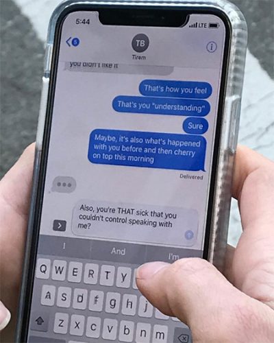 Le photographe professionnel Jeff Mermelstein immortalise les messages composés par les gens dans la rue. Si vous vous baladez ce été dans les rues de New York, faites attention aux messages que vous rédigerez sur l’écran de votre smartphone. Le photographe Jeff Mermelstein est à l’affût de toute personne sortant son téléphone dans les lieux publics dans le but de capturer en gros plan un message intime Les clichés obtenus sans que la personne ne s’en rende compte révèlent ainsi des messages profondément personnels tout à tour amusés, énervés, voire érotiques. Focalisée sur le message en lui-même, chaque photo est cadrée de manière à ne dévoiler que peu de détails sur la personne, si ce n’est une couleur de vernis à ongles ou un morceau de tatouage et, parfois, un prénom ou un pseudo. Au-delà des questions éthiques que cela peut soulever, le travail de Mermelstein, qui est un photographe de rue reconnu, forme un bon indicateur de notre société actuelle et sa démarche peut être qualifiée d’anthropologiste. Des dizaines de clichés pris depuis octobre 2017 composent le compte Instagram de Jeff Mermelstein, dont voici quelques exemples:
