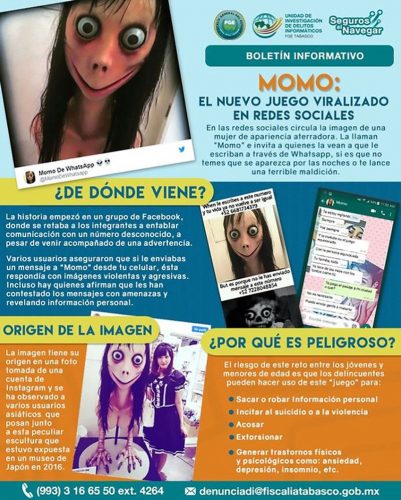 Apparu en Amérique latine, le “Momo Game” aurait déjà traversé les frontières et fait ses débuts sur le sol américain… Un blogueur américain affirme ainsi avoir été contacté par “Momo” pour participer au jeu mortel. Une expérience qu’il décrit comme “effrayante”. “La chose la plus effrayante au sujet du Momo game, c’est la simplicité avec laquelle on peut y prendre part” explique le blogueur américain. “Les enfants y sont exposés, via WhatsApp et Facebook. Tout ce qu’ils doivent faire, c’est en entendre parler et se dire “je vais y participer”, puis ils sont pris dans le filet psychologique.” Au Mexique, les autorités ont lancé plusieurs appels à la vigilance sur les réseaux sociaux, et fermés plusieurs groupes sur Facebook, qui proposaient aux adolescents de participer au Momo game. Un numéro d’urgence a été mis en place pour permettre aux parents de s’informer sur les dangers du défi. En Argentine, une adolescente de 12 ans est décédée en participant au défi. Les autorités espagnoles ont mis en garde les parents, craignant que le phénomène débarque en Europe. WhatsApp a de son côté pris conscience de l’existence du jeu et encourage les utilisateurs à bloquer les profils suspects qui tenteraient d’entrer en contact avec eux. Dans la pratique, il est toutefois très difficile de connaître l’ampleur du phénomène, n’importe qui pouvant y participer de façon totalement anonyme.