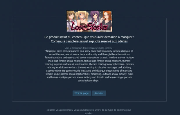 Alors qu’il y a encore quelques mois surgissait une polémique autour de la présence de titres non-censurés sur Steam, Valve retourne sa veste et ouvre aujourd’hui sa plate-forme aux jeux non-censurés. Les choses semblaient assez délicates entre Valve et certains studios de développement, mais il semblerait que la société se soit décidée à permettre la publication de contenu pour adultes sans aucune forme de censure sur Steam. Il faut comprendre par là que des jeux avec des séquences de sexe explicites trouveront maintenant leur place à côté de blockbusters vidéoludiques ou de jeux indépendants, au gameplay plus classique. A noter également que suite à une amélioration de la plate-forme, les utilisateurs peuvent désormais plus facilement ignorer certains types de contenu pour adultes, comme du contenu gore ou violent, ou du contenu à caractère sexuel. Une option permet en plus de spécifiquement restreindre l’accès aux jeux présentant des scènes très explicites en la matière. Valve se défendait jusque là de publier du contenu réservé aux adultes par l’absence d’options permettant de facilement filtrer ce genre de contenu. Bien décidée à travailler avec les développeurs proposant des scènes explicites, en apportant toutefois une description du contenu, la société américaine a même déclaré ceci : “Nous pensons que le contexte dans lequel le contenu est présenté est important, et donner au développeur une place pour décrire et expliquer ce que contient son jeu vous fournit encore plus d’informations quand vous parcourez le magasin en vue d’un achat. Lorsque vous consulterez la page du magasin d’un jeu à contenu pour adultes, nous vous afficherons cette description écrite par le développeur” Des développeurs sont restés dans l’attente de cette amélioration pendant de nombreux mois. Avec cette nouvelle politique, Valve n’hésite pas à contredire les autres géants de l’industrie comme Apple ou Microsoft, qui appliquent une censure très stricte à l’égard des “contenus pour adultes”.