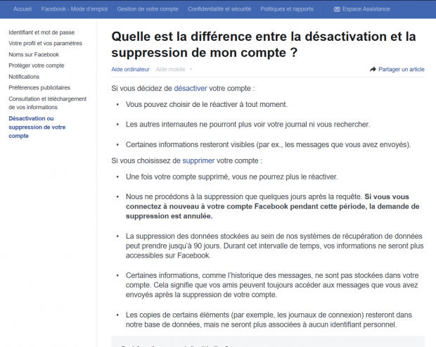 Une nouvelle règle vient d’être instaurée sur Facebook, dans le cas d’une demande de suppression de compte la période d’attente nécessaire est étendue à 30 jours. La multiplication de demandes suite à l’annonce d’une énorme faille de sécurité sur le réseau social américain ne doit pas y être étrangère. Dans le cas d’une demande de suppression de son compte Facebook, le réseau social ne procédait effectivement qu’après une période de 14 jours jusqu’à aujourd’hui. Désormais il faudra patienter un total de 30 jours pour supprimer son compte. « Suite à une demande de suppression de compte, nous avons constaté que des personnes essayaient de se connecter après la période des 14 jours. Cette augmentation donnera ainsi aux gens plus de temps pour faire un choix avisé.», explique le représentant de Facebook. Nous ne savons pas encore à l’heure actuelle si cette nouvelle extension de la période de rétraction est déjà appliquée en Europe, car la page d’assistance ne précise pas encore cette information. Mais si cela n’est pas encore appliqué dans nos contrées, cela devrait l’être sous peu. Une fois la demande de suppression de son compte Facebook opérée, il est nécessaire de ne pas s’y reconnecter avant sa fin, cette période faisant foi de période de rétraction. D’ailleurs, si cela est votre souhait, il ne faudra pas tarder pour procéder à cette manipulation pour, peut-être, échapper à cette augmentation du délai d’attente – cette manœuvre donnant l’impression de vouloir subtilement pousser les gens à changer d’avis. Après l’affaire Cambridge Analytica, c’est maintenant une nouvelle faille de sécurité qui place le réseau social dans la tourmente. Cette décision de la part de Facebook montre sa volonté de vouloir limiter l’hémorragie qu’a pu engendrer les différents scandales autour du réseau social américain, suite à une demande croissante et massive de clôtures définitives de comptes d’utilisateurs.