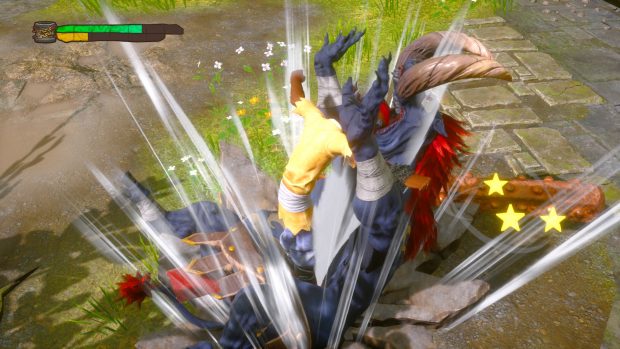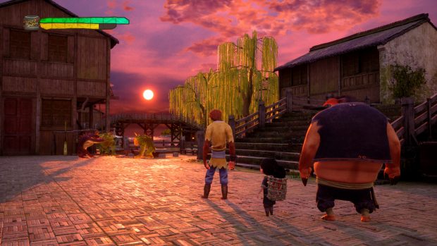 Trois ans après la sortie du film d’animation éponyme, Monkey King : Hero is Back a droit à son adaptation vidéoludique. Si l’œuvre cinématographique a connu un véritable succès lors de sa sortie, cette adaptation est-elle à la hauteur du film ? Les personnages ont des personnalités propres et très différentes. Le jeu vidéo reprend la trame narrative du film sorti en 2015 en Chine, lui-même largement inspiré du roman Le Voyage en Occident. On découvre le passé tumultueux du Roi Singe, Dasheng, qui s’est retrouvé emprisonné dans une cage de glace par Bouddha après avoir abusé de ses privilèges et pouvoirs pour défier les dieux et l’armée céleste. Au bout d’une méditation imposée de 500 ans, Dasheng est délivré de sa malédiction par un petit garçon maladroit. Cette délivrance n’est que de courte durée puisque Bouddha lui signifie qu’il devra se racheter une conduite s’il veut véritablement être libéré. Pour cela, il devra aider le petit garçon et le bébé qu’il garde en repoussant les monstres qui ont envahi les villages alentour. Au fur et à mesure qu’il vient en aide à la population et repousse les ennemis, Dasheng retrouve peu à peu ses pouvoirs et se libère des chaînes de Bouddha. Si le scénario perd un peu de sa profondeur dans cette adaptation, les personnages n’en restent pas moins attachants. Dasheng est un antihéros blasé qui ne cherche qu’à récupérer ses pouvoirs et qui ne fait le bien que dans ce but, alors que le jeune Liuer est émerveillé par tout ce qui l’entoure. On regrette d’ailleurs d’entendre plus souvent le jeune garçon – beaucoup trop peureux – que Dasheng dont la personnalité est tout de même beaucoup plus amusante. Une succession de combats Le joueur sera amené à combattre de nombreux monstres. Monkey King : Hero is Back est un jeu d’action et d’aventure reprenant des éléments RPG. Pour retrouver sa liberté, Dasheng va devoir terrasser les monstres qui ont envahi les villages alentour et kidnappé les bébés de villageois. Bien qu’il soit accompagné pour réaliser cette mission, le Roi Singe sera seul au combat. Fort heureusement, il pourra compter sur ses connaissances en arts martiaux pour anéantir ses ennemis. Combat en temps réel en face à face, en arène pour ouvrir des coffres précieux ou anéantir des boss, les occasions ne manqueront pas pour utiliser les différentes attaques de Dasheng. Le Roi Singe dispose de deux types d’attaques ; lourdes et légères. Chacune d’entre elles dispose de plusieurs enchaînements et animations qui interviennent parfois par hasard et parfois lorsqu’on attaque au bon moment. Le joueur peut également utiliser des éléments du décor pour tabasser ses ennemis, ainsi que d’attaques magiques. Celles-ci se débloquent en récoltant l’énergie des ennemis terrassés. Au bout d’un moment, le joueur peut se rendre près d’une statue de Bouddha et débloquer une nouvelle attaque. Le joueur peut débloquer et renforcer les attaques magiques de Dasheng. Le personnage dispose d’un joli éventail de techniques d’art martial, ainsi que de divers combos et attaques spéciales qui viendront dynamiser les nombreux affrontements du jeu. Il arrive tout de même que les combats soient illisibles tant les ennemis sont nombreux et que les coups volent dans tous les sens. De plus, le fait que l’on ne puisse pas verrouiller une cible est navrant. De plus, certaines actions mettent un certain temps avant de s’exécuter lors des combats. Une latence minime dans le cas des attaques, mais qui est tout de même regrettable. On retrouve également cet aspect négatif au niveau des sauts. L’animation de saut prend une seconde pour se lancer ce qui peut parfois pousser le personnage à manquer l’élément sur lequel on voulait qu’il atterrisse. Si on pardonne facilement le studio pour cette erreur – minime – lors des combats, c’est tout de suite beaucoup plus frustrant, car plus prononcé, pour les sauts. On retrouve également le même type de problème au niveau d’actions banales à réaliser. Ainsi, grimper une échelle impose un temps d’arrêt – très bref, mais tout de même – avant de lancer l’animation – qui se fait sans notre intervention – et qui se termine par un second écran noir. On a du mal à comprendre l’intérêt. Si le studio voulait intégrer le plus de scènes animées en référence au film, cela n’a pas de réel intérêt dans les phases de jeu. Autre point qui semble étrange ; le passage des portes. Même quand la porte est ouverte ou qu’il n’y a tout simplement aucun obstacle, que le chemin s’offre à nous, le jeu lance un écran noir. Ce qui perturbe ici, c’est que les changements de lieux ne sont pas indiqués. En frappant au bon moment, le joueur peut réaliser une attaque surpuissante. Pour en revenir au gameplay du jeu, Monkey King : Hero is back impose un système de récolte de matériaux essentiels pour progresser facilement dans l’aventure. Ainsi, durant son expédition, le Roi Singe doit récolter différents insectes, plantes, fleurs et autres pierres précieuses afin de les échanger au marchand du coin contre des potions de vie, de magie et divers élixirs. Un aspect qui pousse le joueur à explorer les moindres recoins de la carte, même si celle-ci ne réserve pas réellement de surprise. La récolte ne se limite pas aux matériaux puisque le joueur devra également rassembler le plus de « Dieux de la Terre » – des petits personnages cachés dans la terre – et les ramener au « chef » des Dieux de la Terre afin d’améliorer les statistiques de son héros ; esprit, corps et techniques. Pour les repérer, il faudra faire appel à la vision magique du héros, son œil spirituel. Malheureusement, l’aventure reste dans la même continuité tout au long du jeu. Pour passer au village suivant, le joueur devra récupérer des clés en terrassant ses
