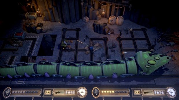 Nouvelle production du petit studio indépendant Tribetoy, Bartlow’s Dread Machine était l’une des sorties-surprises de ce mois de septembre. Et incontestablement, l’un des meilleurs indés du mois. Parmi le raz-de-marée de petits jeux qui sont sortis dans le courant du mois de septembre, on citera brièvement le très sympathique Bartlow’s Dread Machine, une petite production indépendante qui ne paye pas de mine mais qui s’impose pourtant comme l’une des vraies bonnes surprises du mois. Le joueur avance littéralement sur des rails. Le jeu de Tribetoy nage complètement à contre-courant des tendances du moment puisqu’il s’agit d’un twin-stick shooter coopératif, résolument old-school, qui se rapproche beaucoup d’un titre Xbox Live Arcade dans son concept. C’est fun, instinctif, prenant, et parfait pour animer une soirée en couple ou entre amis. Un jeu pop-corn délirant, qui souffre toutefois d’un vilain petit défaut : une fois bouclé, on n’y reviendra pas forcément… Bartlow’s Dread Machine a toutefois plus d’une corde à son arc pour séduire. Tout d’abord, le jeu nous immerge dans un univers délirant dans lequel les jeux vidéo n’ont jamais été créés. Une curieuse machine permet toutefois d’en émuler les sensations, mais sans la profondeur que l’on connait puisque le joueur se retrouve ici sur des “rails” dans des décors en 3D à défilement horizontal. Une formidable mise en abime qui donne d’entrée une aura très particulière à ce jeu. Côté scénario, ce n’est pas forcément très excitant, mais le jeu a le mérite de plonger les joueurs au coeur de l’action dès la première minute de l’aventure. Plusieurs combats de boss sont au programme. Concrètement, il faudra ici faire progresser son personnage sur des “rails” – littéralement -, tout en canardant les hordes d’ennemis qui se ruent vers vous de tous les côtés. Ceux-ci se déplacent également sur les rails, et suivent donc plusieurs tracés potentiels. Seul, c’est déjà plutôt amusant, mais à deux, ça devient franchement très fun puisqu’il faudra se couvrir l’un l’autre en prenant soin de prendre des tracés différents. La formule fonctionne plutôt bien, d’autant plus que le bestiaire est assez varié et que les environnements valent le détour. Les combats de boss sont toutefois un cran en-dessous. Si le jeu a tendance à vite devenir bordélique, il n’en garde pas moins quelques subtilités côté gameplay, avec par exemple un système d’esquive basé sur le timing, qui permet de renvoyer un tir sur le point de vous toucher. Il faudra également faire régulièrement le plein d’énergie et de munitions en explorant plusieurs embranchements de rails. Enfin, le cash récolté permet de débloquer cosmétiques et armes. Même seul, on s’y amuse plutôt bien. Artistiquement, le jeu a beaucoup de charme également avec son univers décalé, sa direction artistique inspirée et ses très jolis décors à défilement horizontal. Bartlow’s Dread Machine parvient à se démarquer des autres productions avec un univers qui lui est propre, plein de charme et de fun. Le jeu est également plutôt bien optimisé et bénéfice d’une bande son solide – à défaut d’être marquante. Seul petit défaut à lui adresser à ce niveau : l’affichage des texte à l’écran est vraiment très petit… S’il s’impose comme un très bon divertissement, Bartlow’s Dread Machine n’en reste pas moins un jeu court qui n’offre pas forcément une bonne rejouabilité. La linéarité des séquences de jeu fait qu’on n’a pas forcément envie d’y revenir, ou en tout cas pas avant un bon moment. A 14,99€, le jeu se déguste toutefois comme un divertissement pop-corn fendard. Un achat qu’on ne regrettera pas, mais sur lequel on ne reviendra pas forcément… Conclusion Sorti dans l’anonymat le plus complet, Bartlow’s Dread Machine est pourtant l’une des bonnes surprises du mois de septembre. Ce petit jeu arcade que l’on doit au studio indépendant Tribetoy surfe sur la vague des twin-stick shooters qui avaient inondé le catalogue du Xbox Live Arcade il y a une dizaine d’années. Fun, décalé et plein de charme, le titre se démarque des autres shooters par son gameplay très particulier. Car ici, vous ne serez pas libre de vous déplacer où vous le souhaiterez. Il faudra suivre des rails, tout en canardant les nombreux ennemis qui vous foncent dessus. Le concept est particulièrement fun à deux, mais le jeu n’est pas bien long et n’offre pas forcément une bonne rejouabilité. Pour 14,99€, il y a toutefois de quoi passer un très agréable moment.