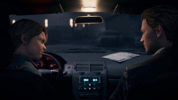 Quelques mois seulement après Tell Me Why, Dontnod nous livre déjà son prochain jeu narratif. Twin Mirror est également le premier jeu “auto-publié” du studio français. Les français de Dontnod ont fait des jeux narratifs leur marque de fabrique. Depuis le succès de Life is Strange, le studio français copie la formule à toutes les sauces. Il y a quelques mois, il nous livrait Tell Me Why, un autre jeu narratif cette fois édité par Microsoft. Avec Twin Mirror, le studio passe à la vitesse supérieure. Il nous livre également sa première production “auto-publiée”. Les personnages principaux du jeu manquent cruellement de charisme. Etonnamment, le studio a choisi de ranger au placard sa formule épisodique pour nous proposer un titre qui se dégustera d’une seule traite. La formule évolue un peu également puisque Twin Mirror a été vendu depuis le début comme un jeu d’enquête narratif. Dans la pratique, s’il y a plus de séquences où on prend directement le contrôle du personnage que dans les autres jeux de Dontnod, la partie enquête reste ultra-minimaliste et le jeu reste très similaire aux autres productions du studio. Comme Life is Strange et Tell Me Why, Twin Mirror a sa petite spécificité qui lui permet de sortir du rang. Le premier jouait la carte des voyages dans le temps, le second sur l’instabilité de la mémoire, Twin Mirror propose lui de s’immerger dans le “palace de l’esprit”, un lieu dans lequel le personnage principal Sam Higgs se retire pour se remémorer des événements du passé ou cogiter. Des passages visuellement très maîtrisés qui n’apportent toutefois guère de profondeur à un récit qui en manque cruellement. “Le palace de l’esprit” est la feature qui tire en avant cette production. Sur le papier, le jeu avait pourtant tout pour séduire. Le studio français nous avait vendu sa dernière production comme un jeu d’enquête profond avec des personnages plus matures que dans ses précédentes productions et un scénario plus riche. Si les personnages croisés dans Twin Mirror sont en effet plus matures, ils ne sont pas forcément plus attachants que ceux des autres productions du studio… Le héros de Twin Mirror, Sam Higgs, est même l’un des personnages les plus antipathiques que nous ayons croisé dans un récit, toujours prompt à faire passer ses propres intérêts avant ceux des autres. Et le reste du casting ne relève malheureusement guère le niveau, à l’image de sa compagne qui décline nerveusement sa demande en mariage en tout début d’aventure, sur un ton hyper-arrogant. Et c’est d’entrée de jeu le plus gros défaut de cette production, qui peine à accrocher le joueur avec son casting très pauvre. On notera au passage qu’au niveau des choix narratifs, le joueur est la plupart du temps limité à deux options, deux options qui ne correspondent pas forcément aux réactions naturelles d’un individu… Si chaque choix aura des conséquences sur l’intrigue principale, les choix sont souvent très valisés et pas forcément très naturels. L’intrigue du jeu est portée par le personnage central, qui revient dans la petite bourgade qui l’a vu naître en Virginie de l’Ouest, une ville minière désertée par sa population depuis la fermeture de la principale usine de la ville. Sam se retrouvera directement connecté au meurtre de son meilleur ami, Nick, et tentera alors d’éclaircir ce qui a bien pu se passer… Le scénario souffre globalement d’une écriture assez paresseuse et de dialogues très pauvres. Techniquement, le jeu est plutôt joli. Twin Mirror est sans l’ombre d’un doute la production du studio Dontnod la moins intéressante à ce jour. C’est tout juste si le projet est sauvé du naufrage par sa réalisation soignée et son concept du “palais de l’esprit” très séduisant, qui est surtout révélateur de l’état d’esprit du personnage principal. Pour les développeurs, cet univers alternatif est également l’occasion de nous délivrer quelques séquences “surnaturelles” qui viendront rythmer un récit globalement très mollasson. S’il donne un peu plus de liberté au joueur que les autres productions du studio, Twin Mirror reste un jeu essentiellement narratif où les séquences de gameplay non-scriptées se résument la plupart du temps à une lente marche dans des espaces clos et quelques interactions avec les décors / PNJ. Rien de très excitant à l’horizon. Les séquences d’enquête sont également ultra-minimalistes. On est très loin d’un Sherlock Holmes des temps modernes. Piètre jeu d’enquête, Twin Mirror se rapproche finalement davantage d’un thriller interactif de par son orientation très narrative. Le jeu de Dontnod manque le coche niveau casting, mais aussi de son intrigue, qui nous est entièrement présentée à travers les yeux de Sam. Et c’est finalement là le principal défaut de ce jeu : toute l’histoire du jeu nous est présentée du point de vue d’un seul personnage, auquel on a non seulement beaucoup de mal à s’attacher mais qui en plus semble faire systématiquement les plus mauvais choix quelle que soit l’option que le joueur coche… Avec un casting différent, des dialogues plus travaillés et une intrigue plus intéressante, le résultat aurait sans doute été très différent. Si les visages sont plutôt bien modélisés, les expressions faciales sont minimalistes. Côté réalisation, le jeu sème le chaud et le froid. Twin Mirror est dans l’ensemble plutôt joli, quelques panoramas sont très réussis et la bande son supporte efficacement l’intrigue. C’est au niveau des détails que le bas blesse, avec des expressions faciales minimalistes, des bugs graphiques à la pelle et un positionnement de la caméra extrêmement douteux lors des séquences de gameplay, offrant un très mauvais aperçu de l’environnement en plus de fortement handicaper le joueur dans ses dépla
