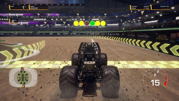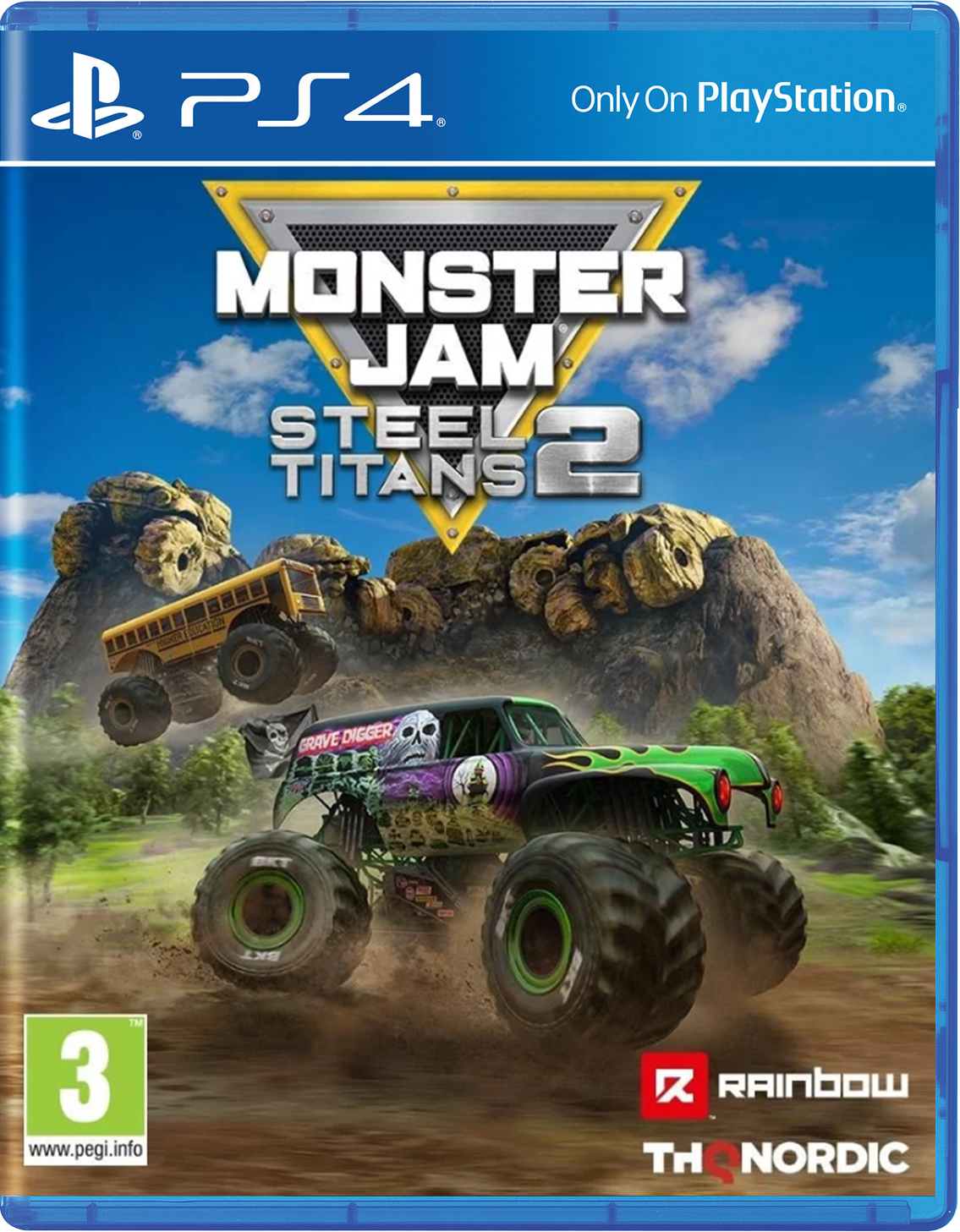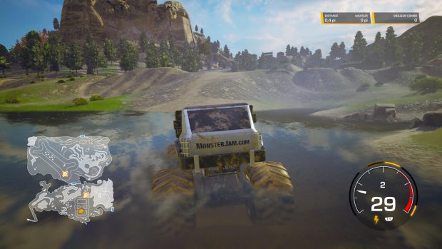 Suite officielle d’un premier épisode peu convaincant sorti en 2019, Monster Jam Steel Titans 2 est-il capable d’empêcher le navire de sombrer ? Si le Monster Jam est relativement peu connu dans nos contrées, il n’en reste pas moins un événement extrêmement populaire aux Etats-Unis. Suivi chaque année par des milliers de téléspectateurs, la compétition se veut avant tout un condensé de mécanique, de spectacle et d’adrénaline. Voilà plusieurs années déjà que les studios de développement s’essaient tant bien que mal à l’aventure du monster truck dans le jeu vidéo. Le résultat n’a que très rarement été très convaincant, en atteste l’épisode le plus récent sorti à ce jour, à savoir Monster Jam Steel Titans 2. Suite éponyme d’un premier épisode dont seuls les graphismes parvenaient à plaire, le second opus de la franchise garde quasiment les mêmes bases que son aîné. A la différence qu’il arrive même à faire pire que celui-ci, un exploit en soi. Les courses ne sont pas suffisamment variées et manquent terriblement de peps. On s’ennuie vite dans Monster Jam Steel Titans 2. Steel Titans 2 fait même plus que garder les mêmes bases que le premier épisode, puisqu’il en est la pâle copie. Rien ne semble avoir changé en 2 ans, à commencer par le contenu du titre. Les développeurs se contentent toujours de proposer un mode carrière fort rempli mais paradoxalement vide de sens. Vous gravirez les échelons du Monster Jam en près de 20 chapitres (ou courses), et acquerrez de nouveaux véhicules au fil des courses. Pour progresser, vous retrouverez un monde ouvert comme précédemment, plus vert mais toujours aussi vide. Au fil des courses et donc des chapitres que vous achèverez, vous aurez l’occasion de découvrir de nouveaux univers. Tantôt plus sombres, tantôt plus colorés, ces mondes restent toujours aussi peu inspirés et ne donnent absolument pas envie de les découvrir. On s’ennuie terriblement dans Monster Jam Steel Titans 2, et le semblant de liberté que nous offre le titre n’est pas suffisant pour en faire un bon titre. Le monde ouvert ajoute toutefois de la diversité par rapport aux très nombreuses courses qui, admettons-le, ne nous auront guère emballé. La difficulté est quasiment inexistante, tandis que l’IA est bien calibrée, voire trop bien, puisqu’elle n’apporte aucune adversité. Les cascades, que l’on enchaînera évidemment, discipline oblige, sont malheureusement beaucoup trop hasardeuses et ne se reposent pas suffisamment sur les capacités du pilote. La faute à une physique incroyablement ratée, d’une autre époque et qui donne parfois lieu à des résultats complètement incompréhensifs et fort peu réalistes. Si l’on peut reprocher à MJST 2 des courses trop fades, rendons à Rainbow Studios ce qui appartient à Rainbow Studios. Les véhicules se prennent rapidement et plutôt facilement en main, avec des contrôles assez intuitifs. En effet, le joystick gauche correspond aux deux roues avant, tandis que, vous l’aurez compris, le droit contrôle les roues arrières. Il n’y a en soi aucune autre commande à connaître, si ce n’est le turbo et l’accélération, mais qui s’activent grâce à une simple pression sur la touche adéquate. Le passage dans l’eau n’engendre aucun remous ou éclaboussures, à l’image d’un titre sans la moindre étincelle et dont les graphismes peinent à convaincre, surtout en 2021. Monster Jam Steel Titans 2 s’inspire donc énormément de son aîné, jusque dans les graphismes. Ça n’est en soi pas une tare, puisque le premier opus était relativement réussi visuellement. En revanche, pour un titre sorti deux ans plus tard, il est plutôt décevant de ne pas remarquer la moindre mise à jour à ce niveau. Si les paysages proposent des panoramas relativement réussis, le constat est tout autre une fois que l’on se rapproche des éléments du décor. Certains ont des textures très brouillonnes et baveuses, tandis que d’autres sont très brièvement modélisés. En attestent les arbres dans certains paysages, qui semblent tous identiques entre eux et peu élaborés. De plus, lorsque votre véhicule passe sur la terre, il renvoie des particules sommairement réalisées, mais ne crée pas de remous ou d’éclaboussures lorsqu’il traverse l’eau. Celle-ci est complètement impassible au passage de notre bolide et trahit un manque criant de finition au sein du titre. Enfin, et c’est là que l’on est en droit d’en attendre plus de la part des développeurs, Monster Jam Steel Titans 2 semble sorti bien trop tôt par rapport à son état actuel. Les bugs sont extrêmement nombreux et gâchent l'”expérience” de jeu. Du clipping qui est omniprésent aux textures qui apparaissent à retardement, rien ne semble abouti. De très nombreux (et longs) chargements viennent quant à eux entrecouper les changements de menus et de niveaux. Nous espérons voir très vite arriver un patch capable de corriger tout ça, même si rien n’était proposé le jour de la sortie du titre … Conclusion Construit sur les fondations du premier volet, Monster Jam Steel Titans 2 n’améliore que trop peu la recette, se contentant de recopier la formule de son ainé. Rien ne semble avoir changé depuis le premier opus. Des graphismes à la physique en passant par le contenu proposé, le jeu semble avoir copié collé la formule sans apporter de réelles nouveautés ni améliorer la prise en main ou le mode carrière. Si les graphismes arrivaient à convaincre en 2019, ils ont aujourd’hui très mal vieillis. Ce n’est guère plus glorieux en ce qui concerne la maniabilité des véhicules, pourtant tellement importante dans ce style de jeu. Les contrôles sont accessibles, mais laissent vite la place à une frustration grandissante due en grande partie à une physique complètement ratée et à une répétitivité omniprésente. Le mode solo ma