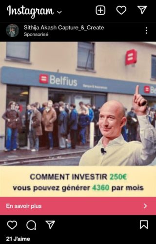 Prudence si vous utilisez le réseau social ces jours-ci. Des arnaques y sont massivement partagées. Fin de semaine, le flux de nombreux utilisateurs du réseau social Instagram a été inondé par une série d’arnaques sponsorisées, qui sont visiblement passées entre les mailles de la sécurité de Meta, la maison-mère de Facebook. Logiquement, les “arnaques” ne sont pas censées être diffusées sur le réseau social Instagram. Une série de garde-fous sont en place pour éviter que ce type d’annonce publicitaire ne soit diffusée. Etrangement pourtant, nous avons constaté nous-mêmes que plusieurs annonces illicites avaient été diffusées sur le réseau social en Belgique en fin de semaine. Ces arnaques ventaient les mérites d’investissements miracles pouvant rapporter des dizaines de milliers d’euros en quelques jours. La plupart mentionnaient expressément l’achat d’action “Tesla” et utilisaient des visuels détournés d’Internet, avec des images de Tesla, Amazon ou encore de la banque Belfius. Les internautes étaient nombreux à les avoir repérées puisque sous les posts, on pouvait lire plusieurs dizaines de commentaires avertissant les autres internautes d’une potentielle arnaque. Les arnaques ont été postées avec des comptes de petite envergure qui n’avaient aucun rapport avec les campagnes promues. Si vous vous êtes fait avoir par l’une de ces arnaques, il convient de bloquer le plus rapidement possible votre carte de crédit et d’aller déposer plainte avec le maximum de preuves possible à votre bureau de police.