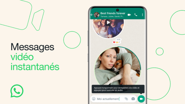 Envoyer une courte vidéo de 60 secondes à vos proches, ça vous intéresse ? WhatsApp introduit en ce moment-même une nouvelle fonctionnalité appelée “Message vidéo instantané”. Voici en quoi elle consiste. Dans les prochains jours, WhatsApp va déployer à tous ses utilisateurs une toute nouvelle fonctionnalité. Il s’agit des messages vidéo instantanés. C’est tout à fait inédit, puisqu’aucune autre application de messagerie instantanée ne propose ce type d’outils. Concrètement, WhatsApp va vous permettre d’envoyer une très courte vidéo de 60 secondes à vos proches, amis ou collègues. Celle-ci ne sera pas supprimée après avoir été vue, comme dans Snapchat, mais restera en permanence dans la conversation. Son principe est exactement le même qu’avec un message vocal, puisque l’on pourra glisser vers le haut pour enregistrer en mains libres. WhatsApp assure que les vidéos seront protégées par le chiffrement de bout en bout. Enfin, les vidéos seront lues automatiquement sans son, il suffira d’appuyer dessus pour l’activer. Autre précision : les vidéos en question seront affichées avec une forme circulaire et non rectangulaire comme c’est généralement le cas. Dans la pratique toutefois rien ne vous empêche d’enregistrer le message vidéo séparément pour l’envoyer comme pièce jointe. “Nous pensons qu’il s’agira d’un moyen amusant de partager des moments avec toute l’émotion d’une vidéo, que ce soit pour souhaiter un joyeux anniversaire, rire d’une blague ou annoncer une bonne nouvelle”, prévient le réseau social sur son blog.