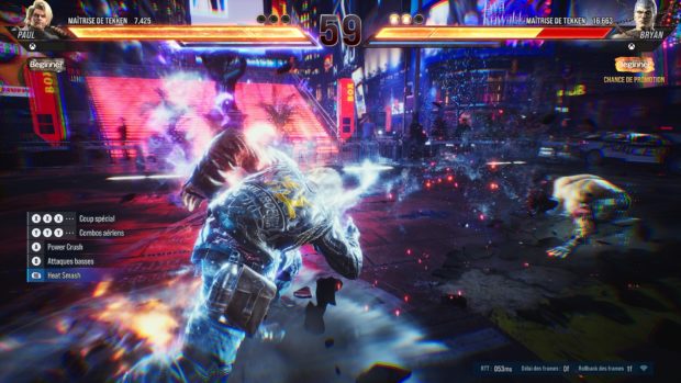 Dans une franchise telle que Tekken, les jeux n’ont qu’une seule ambition, ou presque : surpasser l’opus précédent. Pari réussi pour Tekken 8 ? Absolument ! Même si quelques petits soucis persistent… Nous faisons partie des chanceux qui ont eu la possibilité de tester Tekken en avance lors du Closed Network Test, le test en bêta qui était d’abord et avant tout l’occasion pour Bandai-Namco de vérifier la qualité de la connexion. Et forcément, au moment de juger le dernier opus de la franchise, il nous a semblé pertinent de ressortir Tekken 7 des placards. Difficile en effet de voir comment perfectionner une formule telle que celle de Tekken, tant elle semble figée dans le marbre… Et pourtant, les développeurs de Namco Bandai sont parvenus à créer la surprise avec Tekken 8. Explications. Des attaques massives, et parfois un peu brouillonne, mais moins que dans l’opus précédent Toutefois, autant vous le dire tout de suite : nous n’avons eu accès qu’à une toute petite partie du contenu que Tekken 8 nous réservera par la suite, bêta oblige. Une dizaine de personnages tout au plus, et encore moins de modes de jeu, puisque nous avons seulement pu en utiliser deux : le didacticiel et les combats en ligne. Pas de mode histoire, et pas encore de mode hors ligne. Un jeu plein de personnalité… Commençons déjà par le plus évident : Tekken 8 est magnifique. Bien entendu, puisque la nouvelle version de Tekken dispose de graphismes nouvelle génération conçus sur l’Unreal Engine 5. Mais force est de reconnaître qu’à ce niveau-là, le jeu rempli sa promesse comme nulle part ailleurs. Autre amélioration au caractère plutôt cosmétique : la personnalité des combattants. Premièrement grâce au système de rage et au système « heat », la nouveauté qui donne de toutes nouvelles animations durant les combats qui nous donne à voir une nouvelle facette du personnage. Est-ce une qualité ou un défaut ? Toujours est-il qu’il est plus facile de vaincre un adversaire plus avancé Mais surtout, les animations durant le combat sont beaucoup plus expressives, avec des styles de combat bien définis (non pas que ceux de Tekken 7 ne l’étaient pas déjà, mais c’est ici poussé au niveau suivant). Un exemple : Claudio Serafino. En dehors de ses classiques lignes de dialogues d’introduction et de fin, comme « Non c’è spazio per i dilettanti. » (Ce n’est pas un endroit pour les débutants, ici !), et de quelques mouvements spéciaux, on avait du mal à se rendre compte que Claudio possédait quelque chose d’absent chez (la plupart des) autres personnages : de la magie. Mais maintenant, les nouvelles animations de Claudio ne laissent pas de doute quant à sa nature d’exorciste. C’est bien entendu le cas lors des animations de rage (et de « heat »), mais c’est aussi beaucoup plus lisible dans ses mouvements lors des combats, où il apparaît désormais clairement qu’ils sont souvent accompagnés de sorts. Mais assez parlé de l’esthétique, et rentrons maintenant dans le cœur du sujet : le gameplay. Et là-dessus, il y a beaucoup de bon, et un peu de moins bon… Plus fun, mais beaucoup plus inégal Les combos et les attaques de base ont été un peu améliorés dans ce nouvel opus, qui apporte ici plus de clarté au système, plus facile à comprendre et à adopter en temps réel, ce qui évite d’adopter la « stratégie » d’appuyer sur les boutons au hasard en espérant que ça passe. On sait ce que l’on fait, et ce dès les premières minutes de prises en main. C’est aussi vrai grâce à un tutoriel explicatif très clair en la matière, et qui peut être rejoué à n’importe quel moment pour une reprise en main. Mais le système a cependant un certain défaut : face à un adversaire plus expérimenté que soi, Tekken 8 devient plus ou moins un jeu de blocage d’attaques adverses intempestives. Il est en effet très difficile de reprendre la main lors d’un round, largement plus qu’avec le dernier opus. Ce qui peut donner lieu à des combats un peu trop déséquilibrés. Tous les personnages ne se valent malheureusement pas… Et King est peut-être le plus puissant Le déséquilibre se ressent d’ailleurs encore beaucoup chez les personnages. Puisqu’il ne s’agit encore que d’une bêta, on peut espérer que ceux-ci seront plus équilibrés, mais pour le moment, il existe de vraies différences entre un King bien puissant et, par exemple, un Leroy qui laisse un peu à désirer. (Même si la différence n’est jamais absolument insurmontable, car la maîtrise du joueur continue à avoir le dernier mot en la matière). La grosse nouveauté de Tekken 8, c’est le système de « heat » dont on vous a déjà parlé à plusieurs reprises dans cet article. Il est maintenant temps de développer : à un moment précis de votre round, vous pouvez débloquer un « heat burst » : une petite animation va se jouer, et une petite barre bleue située en dessous de votre barre de vie va alors commencer à se vider plutôt rapidement. C’est le moment de donner des coups ! Ce système, qui vous fournit un court moment de puissance que vous devrez activer au moment le plus opportun de votre round, est particulièrement fun, mais peut un peu réduire l’aspect compétitif de Tekken, car tout est dans le choix du meilleur moment. La rage reprend le système des « Rage Arts » Tekken 7, mais cette fois-ci, les animations sont encore plus over the top. Le système avait été controversé, mais il faut reconnaître que son intégration avec le système général de « heat » fonctionne plutôt bien, même si, encore une fois, il réduit un peu plus l’aspect compétitif du jeu à un côté « appuyer au bon moment ». En ce qui concerne la finition, il est impossible d’en parler. Et pour cause, puisque nous n’avons eu ici accès qu’à une version bêta du jeu définitif. Ce que nous avons vu semblait plutôt posi