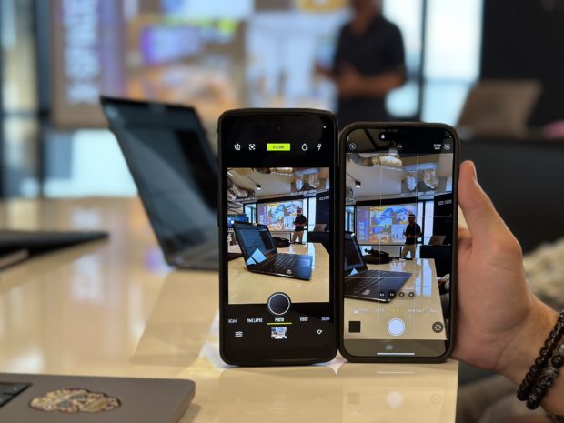 Après avoir parié sur le marché des métiers à risque et des sports de l’extrême, les Français de Crosscall s’attaque désormais au grand public avec le nouveau Stellar-X5. Depuis sa création en 2009, jamais Crosscall ne s’était aventuré en dehors des marchés de niche. Le Shark était ainsi le seul téléphone flottant au monde, la gamme Core s’adresse principalement aux métiers manuels ou à risque, comme les pompiers, les policiers ou les professionnels du bâtiment, et les smartphones estampillés Action s’adressaient principalement aux sportifs de l’extrême. S’adresser à des marchés bien spécifiques, Crosscall en avait fait sa marque de fabrique depuis ses magnifiques locaux situés à Aix-en-Provence. C’est donc de manière assez surprenante que la marque aixoise a révélé, ce mardi matin lors d’un événement exclusif pour la presse francophone, la nouvelle gamme Stellar. “C’est un tout nouveau type de produit destiné aux consom’acteurs, aux personnes actives au quotidien qui se déplacent beaucoup, qui ont tendance à casser beaucoup leur téléphone”, pointe Bertrand Czaicki, DGA de Crosscall. Clairement, la gamme Stellar s’adresse à un public bien plus large. Monsieur et madame Tout-le-Monde sont ciblés, avec un produit “qui vise trois thématiques. Il est pensé pour une vie en mouvement, c’est un investissement durable et responsable et il est adapté au présent, mais également au futur”. L’arrière du Stellar-X5 retrouve la mythique connectique X-Link, ainsi qu’une finition “granuleuse” améliorant la prise en main. Le Stellar-X5, c’est son nom, est donc le premier véritable smartphone grand public de la marque. Une première donc, mais il conserve tout ce qui fait la renommée de Crosscall. “C’est avant tout un Crosscall, son design lui permet de rester résistant aux chutes et aux chocs”, remarque le designer du produit, François Rochais. “Nous avons optimisé au maximum le design pour permettre au châssis d’être résistant. Même le capteur photo est entouré d’un cadre en aluminium. L’arrière du châssis est pour sa part texturé de sorte à rendre la prise en main plus confortable” Soumis à des tests exigeants mis au point par la firme, le Stellar-X5 assure une solidité à toute épreuve. Malgré cela, le smartphone propose une fiche technique en adéquation avec son temps, dans la moyenne des autres smartphones milieu/haut-de-gamme. Son écran Full HD+ de 6,49″ est ainsi capable de monter jusqu’à un taux de rafraîchissement de 120Hz tandis qu’il embarque 8Go de RAM. Côté processeur, c’est une puce Qualcomm 5430 de longue durée, gravée en 6nm, qu’embarque le Stellar-X5. L’écran du Stellar-X5 est, assurément, le point le plus plaisant du smartphone. “Nous voulions ainsi un smartphone qui tient sur la durée”, assure Alexandre Straumann, chef de produit Devices. “Son processeur pourra supporter 5 ans de mises à jour de sécurité ainsi que trois évolutions majeures d’OS. C’est également le seul smartphone au monde à être garanti 5 ans, en ce compris la batterie. C’est unique dans le monde de la téléphonie !” Capteur photo séduisant mais peu évolué Pour les photos, le Stellar-X5 se veut particulièrement ambitieux. Crosscall s’est ainsi associé avec Sony pour le capteur principal de 50MP et l’appareil photo avant de 16MP. Le grand-angle de 120°, lui, est fourni par Samsung. En main, le résultat est plutôt mitigé, l’appareil n’offrant “qu’un” zoom numérique x8. Fiche technique séduisante, mais appareil photo peu convaincant en test. ©G.P. Mis à part ces points importants, le Stellar-X5 dispose d’une batterie de 4.500mAh pour une autonomie annoncée en communication de plus d’une trentaine d’heures. “Nous avons enfin pensé le Stellar comme un smartphone du long-terme, avec de la 5G upgradable, du Wi-Fi 6/6E et du Bluetooth 5.2”, relance M. Straumann. La technologie X-Link, cet espèce d’aimant placé à l’arrière de tous les téléphones de la marque, “est bien évidemment de retour avec le Stellar pour lui assurer une compatibilité avec tous les accessoires”. Petite nouveauté de la gamme, la fonctionnalité X-Space (et non SpaceX…) qui permet au smartphone d’être converti en véritable ordinateur de bureau. “L’objectif était de s’assurer que tous les raccourcis que l’on connaît sur un ordinateur traditionnel était au rendez-vous avec X-Space”, explique Nicolas Prunel, manager software. En pratique, le résultat semble assez convaincant, se reposant sur une interface totalement Android. Reste à voir s’il convaincra les utilisateurs, Samsung et Huawei s’étant aventuré sur le marché, sans véritable succès. Autre nouveauté notable, la technologie UpHear permettant une qualité d’enregistrement audio optimale durant les vidéos, les appels ou les mémos vocaux. “Notre technologie, fonctionnant à l’IA, permet de réduire les bruits parasites de 60dB”, conclut Clément Souyris, ingénieur électronique chez Crosscall. Là aussi, le résultat est prometteur, quoique légèrement parasité. Présenté mardi midi, le Stellar-X5 sera vendu au grand public dès ce vendredi 6 octobre. Destiné à un large public, il se situe toutefois dans la fourchette haute du marché du smartphone, puisqu’il est vendu 899,99€. Un parti-pris assumé qui, on l’espère pour la marque, ne sera pas rebutant pour le consommateur. Un seul coloris existe pour l’instant, noir, la marque étudie la possibilité de proposer d’autres finitions.