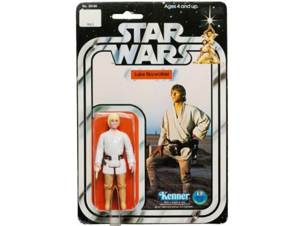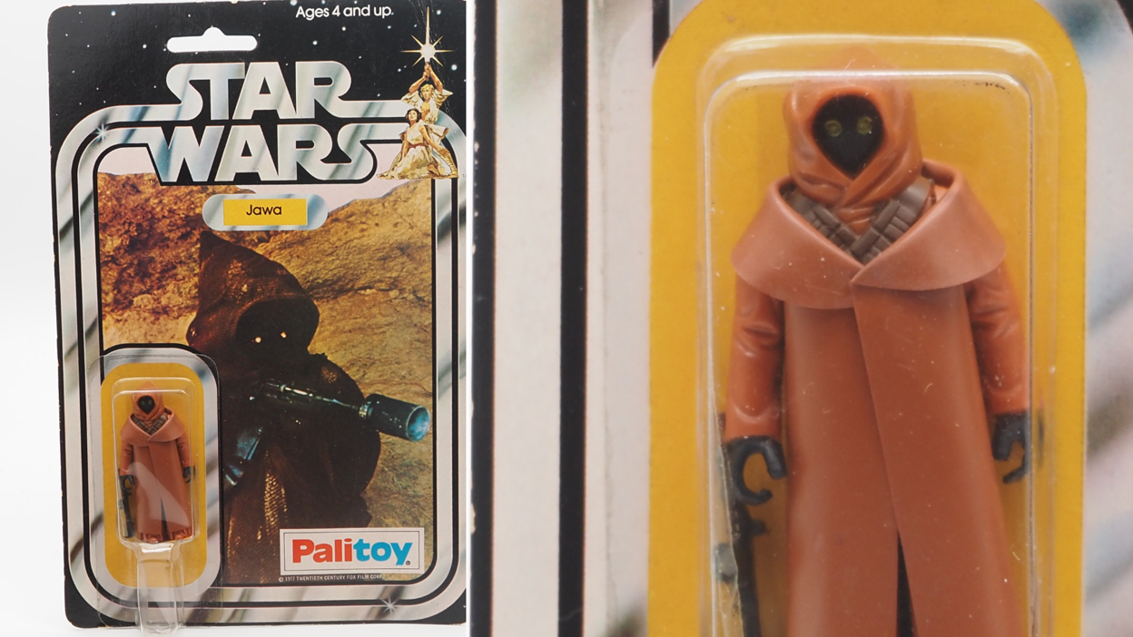 Certains jouets Star Wars valent maintenant plusieurs dizaines de milliers d’euros. Dans certains cas, ces jouets présentent une spécificité. Dans d’autres cas, le simple fait qu’ils soient encore sous emballage augmente considérablement leur valeur. George Lucas n’a pas seulement révolutionné les effets spéciaux avec Star Wars. Le créateur de l’une des sagas cinématographiques les plus populaires de l’histoire a également érigé un véritable empire autour des produits dérivés. En 40 ans d’existence, il a été estimé que les produits dérivés Star Wars ont généré 30 milliards de dollars chiffres d’affaires. Les produits dévirés, et plus particulièrement les figurines, ont littéralement envahi les chambres des fans de la saga, qu’ils soient grands ou petits. Par ailleurs, George Lucas a pu compter sur son ami Steven Spielberg pour mettre en avant des jouets issus de Star Wars (il faut dire que Spielberg touchait un certain pourcentage des revenus générés par la licence). Ainsi, dans E.T., l’extraterrestre (1982), la chambre d’Eliott est parcourue de jouets Star Wars. De la même façon, nous pouvons apercevoir plusieurs jouets Star Wars dans Poltergeist (1982). Et plus récemment, c’est la série Stranger Things qui a cristallisé l’engouement et la nostalgie que revêtent dorénavant les jouets Star Wars de l’époque. Car oui, certains jouets Star Wars sont maintenant très convoités et valent de l’or. Un exemple ? La maison de ventes Excalibur (Royaume-Uni) va mettre en vente une figurine extrêmement rare représentant un Jawa. Sa particularité réside dans « sa cape en vinyle d’origine, qui a été remplacée par une cape en tissu peu de temps après le début de la production ». Il existerait seulement 10 à 15 figurines Jawa identiques dans le monde. Pour l’instant, le jouet est estimé entre 11.000 et 17.500 euros. Ce montant pourrait doubler. Crédit : Excalibur En effet, en juillet dernier, une autre figurine Jawa habillée d’une cape en vinyle a été vendue pour 30.000 euros. Cette figurine se situait dans le garage d’un couple vivant à Stourbridge (Angleterre) et était au côté d’une multitude d’autres jouets Star Wars rares. Il a été estimé que l’ensemble des jouets présent dans ce garage valait 443.000 euros. Nous retrouvions dans ce garage : des figurines dans leur emballage d’origine issues du Retour du Jedi (1.550 euros la figurine), une maquette de la Cantina ou encore un commandant de Star Destroyer (36.000 euros). Crédit : Aston’s Auctioneers En 2015, un collectionneur japonais a mis en vente ses propres jouets Star Wars. Les enchères organisées par Sotheby’s et eBay ont récolté pas moins de 502.202 dollars. Sept figurines issues de L’Empire contre-attaque ont été revendues pour 32.500 dollars. Une figurine représentant Luke Skywalker a quant à elle été vendue pour 27.500 dollars. Il existerait 20 modèles de cette figurine qui a été retirée de la vente « en raison de la propension du sabre laser à se casser », selon Sotheby’s. Crédit : Sotheby’s Enfin, nous pouvons aussi citer le cas du Faucon Millenium Lego vendu pour 15.000 dollars à Las Vegas. De façon plus générale, il suffit d’effectuer quelques recherches sur eBay pour trouver des jouets Star Wars présentant des prix exorbitants. À titre d’exemple, il est ainsi possible d’acquérir une figurine Chewbacca de 1983 pour la modique somme de 1.350 dollars ou une figurine Jar Jar Binks encore sous emballage pour 175 dollars. Il ne vous reste maintenant plus qu’à fouiller votre garage ou votre grenier dans l’espoir de trouver un jouet Star Wars rare.