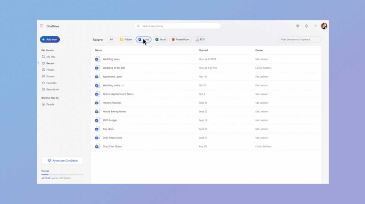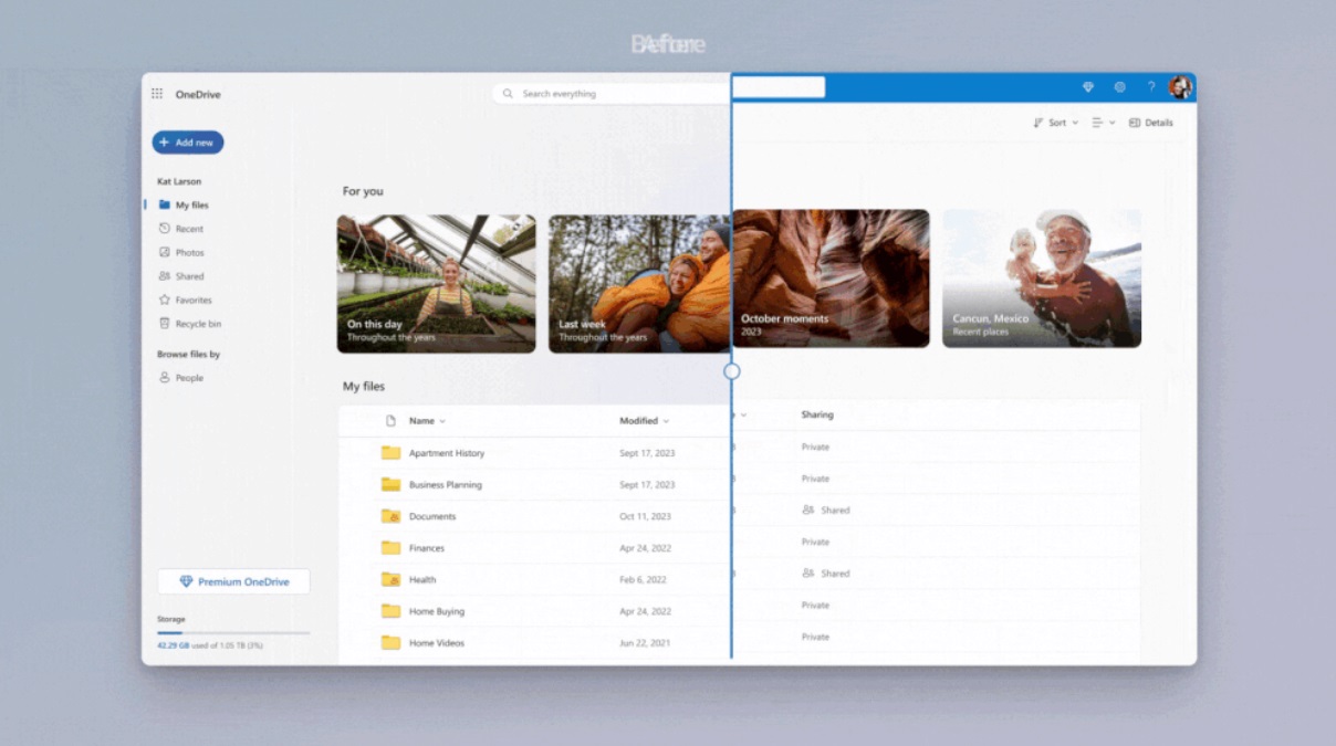 D’ici à la fin du mois de février, Microsoft va déployer pour tous les utilisateurs de OneDrive une nouvelle version de l’interface de son service de stockage. Un changement de look, mais aussi une volonté d’être plus facile à utiliser. Certains d’entre vous y ont peut-être déjà accès tandis que d’autres doivent encore attendre, mais la nouvelle version de OneDrive effectue quelques changements finalement assez subtils (vous ne les aviez peut-être pas remarqués) pour vous simplifier la vie, comme l’explique la firme de Redmond elle-même. Tout d’abord, afin de centrer l’attention sur le contenu, OneDrive se débarrasse désormais de toute trace de couleur bleue que l’on trouvait sur la barre de titre (ce qui ne change pas grand-chose pour être honnête). Deuxième changement : vous pouvez désormais classer vos fichiers en fonction de vos contacts ! C’est une nouvelle possibilité dans le menu de gauche, et qui vous permet, par exemple, de savoir qui vous a envoyé tel document. Dans le même genre, il sera désormais possible de filtrer les documents par type de fichiers (Word, Excel, PDF, etc.) Ceci pourrait s’avouer particulièrement utile afin de n’avoir accès qu’au type de documents que l’on recherche. Enfin, le bouton « ajouter » s’améliore afin de combiner deux fonctionnalités : celle permettant de créer un nouveau document, et celle permettant d’importer un document déjà existant.