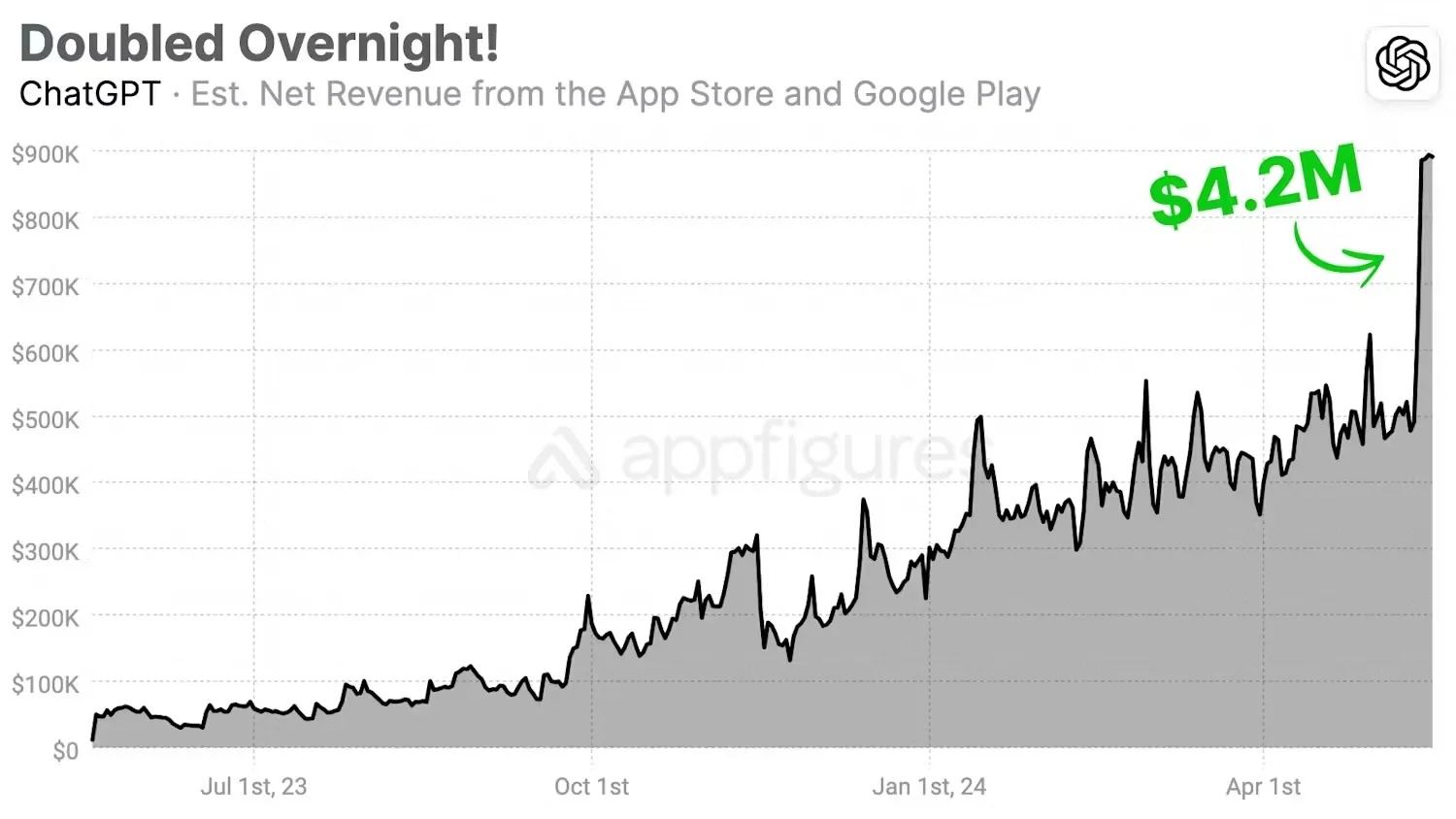 Les revenus de l’application mobile de ChatGPT ont connu leur plus grand pic suite au lancement de GPT-4o. Ces derniers temps ont été riches en intelligence artificielle. La demande augmente, et les géants de la tech se mettent à jour. Cependant, OpenAI se démarque toujours. La firme américaine a lancé en mai 2024 sa toute dernière version de son fameux chatbot : ChatGPT-4o. Le système peut désormais prendre en charge le texte, la parole et la vidéo. La réactivité a été améliorée et il y a une gamme d’options vocales émotionnelles, ce qui en fait un modèle bien plus puissant que ce qui était proposé jusqu’à présent. Du jamais-vu pour Open AI Selon le média américain Techcrunch, cette innovation technique incite de plus en plus d’utilisateurs à passer à l’abonnement payant d’OpenAI. GPT-4o n’est pas encore offert aux utilisateurs de son application ChatGPT sur mobile. OpenAI a depuis annoncé qu’elle a l’intention de déployer plus tard GPT-4o sur mobile. Cependant, depuis la semaine dernière, les utilisateurs mobiles ont été incités à passer à l’abonnement mensuel de 19,99 $ de ChatGPT pour expérimenter les récentes mises à jour. © Appfigure Les revenus de la version mobile de ChatGPT auraient augmenté de 22 % le jour du lancement de GPT-4o. Selon les chiffres de Appfigure, on remarque l’évolution continue les jours suivants. 4,2 millions de dollars de revenus nets sur l’App Store et Google Play auraient été générés entre le 13 et le 17 mai. Ce serait le plus grand pic de revenus que l’application ait connu jusqu’à présent. Ce sont les utilisateurs d’appareils IOS qui ont été les plus réactifs au lancement de GPT-4o. En effet, l’App Store contribue à la majorité des nouveaux revenus avec une part de 81 %. Le marché américain représente 1,8 million de dollars de revenus. La France est aussi dans ce classement avec 147 000 dollars de revenus, juste derrière l’Allemagne (282 000 dollars), le Royaume-Uni (212 000 dollars) et le Japon (210 000 dollars). Cette augmentation soudaine confirme l’enthousiasme grandissant du grand public envers l’intelligence artificielle.