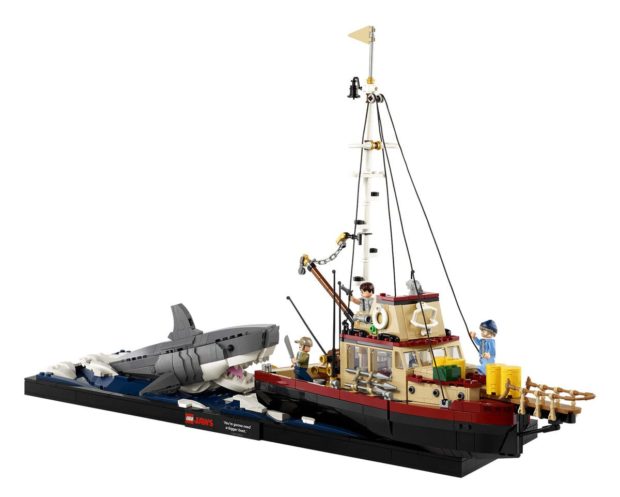Les fans du film de Steven Spielberg pourront reproduire une scène culte grâce à ce set. Nous retrouvons le bateau de pêche du film et bien entendu le mythique requin blanc. Quelques détails sont à noter. Lego a choisi la date du 4 juillet, soit le jour de la fête nationale américaine, pour dévoiler le tout premier set Les Dents de la Mer (Jaws). Et autant dire que cette date n’a pas été choisie au hasard. En effet, c’est précisément durant cette période de fête que se déroule le long métrage de Steven Spielberg. Mais que contient ce set Lego ? Ce set contient le bateau de pêche “Orca” et trois figurines représentant : Martin Brody, Matt Hooper et Sam Quint. Bien entendu, nous retrouvons également le mythique requin blanc qui peut être séparé en deux. Le set contient au total 1.497 pièces et présente les dimensions suivantes : 35 cm de haut pour le bateau et 59 cm de long pour le diorama. Nous pouvons également noter quelques détails comme le harpon empoisonné de Hooper et un écriteau, situé sur le côté du set, sur lequel il est écrit la célèbre phrase de Martin Brody : « You’re gonna need a bigger boat ». Enfin, notons que l’annonce de ce set a été accompagnée d’un petit court métrage Lego Les Dents de la Mer. Le set Lego Les Dents de la Mer sera disponible le 1er août prochain au prix de 149,99 €. Ceux qui mettront la main dessus pourront donc assembler les différentes pièces de ce set ou, pourquoi pas, les désassembler en fonction des actions du requin.