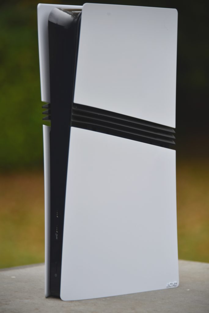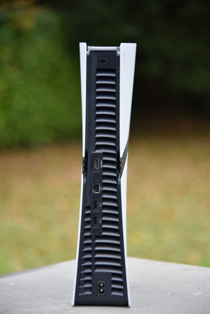 Disponible depuis quelques jours en magasin au prix de 799€, la nouvelle console de Sony se présente comme un monstre de puissance taillé pour les “hardcore gamers”. Présentation en images. En attendant notre test complet de la console, nous avons décidé de vous livrer nos premières photos de la nouvelle console de Sony. Vous pourrez consulter dans quelques heures notre avis sur la machine, accompagné de tous les détails techniques. La poussière rentrera encore assez facilement à l’intérieur du boitier, attention à veiller au bon entretien de la console ! La connectique n’évolue pas, si ce n’est au niveau du Wi-Fi. Le design a été repensé, la console est plus fine et plus légère.