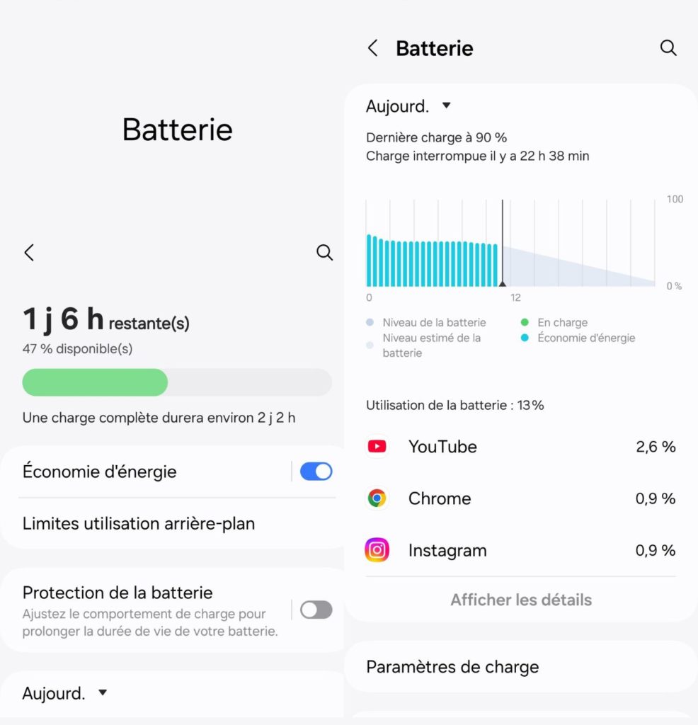 Il est très important de connaître l’état de la batterie de votre téléphone. C’est cet état qui va définir le temps d’autonomie maximum de votre appareil. La batterie se dégrade naturellement avec le temps, ce qui n’empêche pas d’observer ses performances évoluer. Nous allons ici faire un tour des moyens à votre disposition pour vérifier l’état de la batterie de votre téléphone Android, et cela commence par une simple manipulation sur votre téléphone dans les réglages. La batterie influe sur l’autonomie donc, mais pas seulement, le fonctionnement général du téléphone en dépend, il est par conséquent toujours bon de garder un œil sur cette dernière. Données fournies par le téléphone Votre téléphone, via le système Android peut déjà fournir de précieuses informations quant à l’état de santé de votre batterie. Rendez vous dans “Réglages”, puis dans l’onglet “Batterie”. Vous retrouverez ici une série d’informations utiles comme le nombre d’heures restantes avant de devoir recharger, un chiffre que vous pouvez observer évoluer au fil du temps et des recharges. Cet onglet vous donne accès également aux applications qui ont consommé le plus d’énergie ou à celles qui ont été mises en veille par économie. Etat de batterie et applications consommatrices de batterie Selon votre version Android, cet onglet possèdera plus ou moins d’options vous permettant de customiser la consommation d’énergie de telle ou telle application. Il vous sera également possible, pour les modèles les plus récents d’activer des modes de charge intelligents très efficaces pour conserver votre batterie. Ceux-ci ne chargeront jamais le téléphone jusqu’à 100%, ce qui peut endommager la batterie, et s’arrêteront plutôt à 80, avant d’entamer une charge lente. Applications à installer Le système Android nous fournit quelques informations, mais l’installation d’applications peut nous fournir des données plus précises et inatteignables. Deux d’entre elles aux profils bien différents selon les informations que vous souhaitez, peuvent vous aider à suivre l’état de votre batterie. La première se nomme AccuBattery, et vous permettra d’avoir des chiffres précis sur l’état général de votre batterie et son usure. Elle est très simple d’utilisation et vous demandera simplement quelques jours afin d’analyser vos cycles de chargement. Vous aurez donc un avis succinct pour savoir si oui ou non votre batterie est usée. La seconde se nomme CPU-Z et vous fournira des chiffres plus précis si vous êtes curieux d’avoir des informations notamment sur la mémoire vive. L’état général sera moins précis que sur AccuBattery mais les paramètres observables sont plus diversifiés. Vérifier le Level Block Une dernière opération peut vous alerter sur le niveau de votre batterie. Il vous suffit de vous rendre sur le clavier d’appel de votre téléphone et de taper *#0228#. Cette opération vous amènera à un menu caché du système Android et vous permettra de vérifier une information capitale concernant votre batterie. Nous vous conseillons d’effectuer ceci lorsque votre téléphone est chargé à 100%. L’information nous intéressant est le Level Block, si ce dernier n’est pas de 8/8 blocks, cela signifie que la batterie ne se charge pas au maximum même si elle affiche 100%, ce qui est synonyme d’une batterie en mauvaise santé et fortement usée. Menu du Level Block (ici 6 blocks, le téléphone est à 72% de batterie)