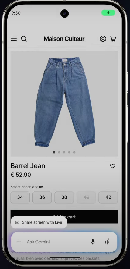 Google nous avait teasé sa vision du futur de l’IA l’année passée, c’est maintenant une réalité avec Gemini Live. L’Intelligence Artificielle de Google s’invite dans vos écrans pour vous aider directement dans vos tâches. Gemini Live s’offre donc deux fonctionnalités principales, d’une part le partage d’écran, qui permet à l’IA de voir ce qui se trouve sur l’écran de l’utilisateur. Et d’autre part le flux vidéo de la caméra, qui peut également faire l’objet d’une analyse IA. Flux vidéo A la manière de Google Lens, Gemini Live va analyser ce que lui montre la caméra, à l’exception qu’avec Live ce sera un flux vidéo continu. L’utilisateur peut converser avec Gemini de ce qui se passe devant la caméra. La conversation peut se faire via un chat bot présent en bas de l’écran ou via une commande vocale. Une fois Gemini lancé, le client peut demander n’importe quoi à l’IA, qui se basera sur ce qu’elle voit pour répondre. On peut penser à demander des soluces pour un jeu vidéo, des idées de tenue sur base d’un élément présent dans sa garde-robe, ou encore un historique lorsqu’on filme un bâtiment dans une ville. L’outil facilite au final grandement l’utilisation d’outils comme Google Lens qui demandait de prendre une photo avant de décrire ce qui s’y trouve. Non seulement l’assistant peut vous décrire ce qui se passe derrière votre caméra, mais il peut converser avec vous à ce sujet. Partage d’écran De la même manière que l’option flux vidéo, le partage d’écran va permettre à Gemini Live d’analyser en temps réel le contenu de votre écran. Les possibilités sont très larges et à nouveau, le Live accélère grandement l’utilisation d’un chat bot pour des questions rapides. Au lieu de prendre une capture d’écran et de l’envoyer dans un chat, l’option vous permet un gain de temps considérable. L’IA répond à vos questions en se basant sur ses connaissances et sur ce qu’elle voit à l’écran. Interface de Gemini Live en partage d’écran En bref, Gemini Live est un bel ajout et un réel assistant en temps réel qui s’avère plutôt pratique. Il facilite encore plus l’implémentation de l’IA dans les tâches quotidiennes, même si il ne représente pas une révolution dans le domaine. Tarifs et concurrence Google prend de l’avance sur ses concurrents avec cette nouveauté, qui sera prochainement déployée à grande échelle, à condition d’être abonné à Gemini Advanced. L’abonnement payant s’élevant à une vingtaine d’euros par mois permettra donc un accès à toutes les fonctionnalités Gemini Live, qui reste donc une exclusivité coûteuse. Même si Google est en avance sur Apple avec Siri et Amazon et son Alexa, rappelons que l’équivalent Gemini Live de Chat GPT est déjà sorti il y a quelques mois.