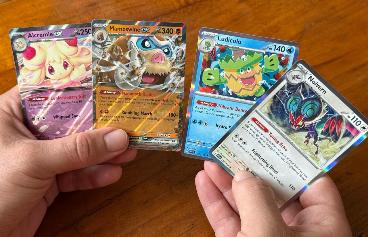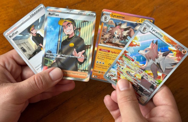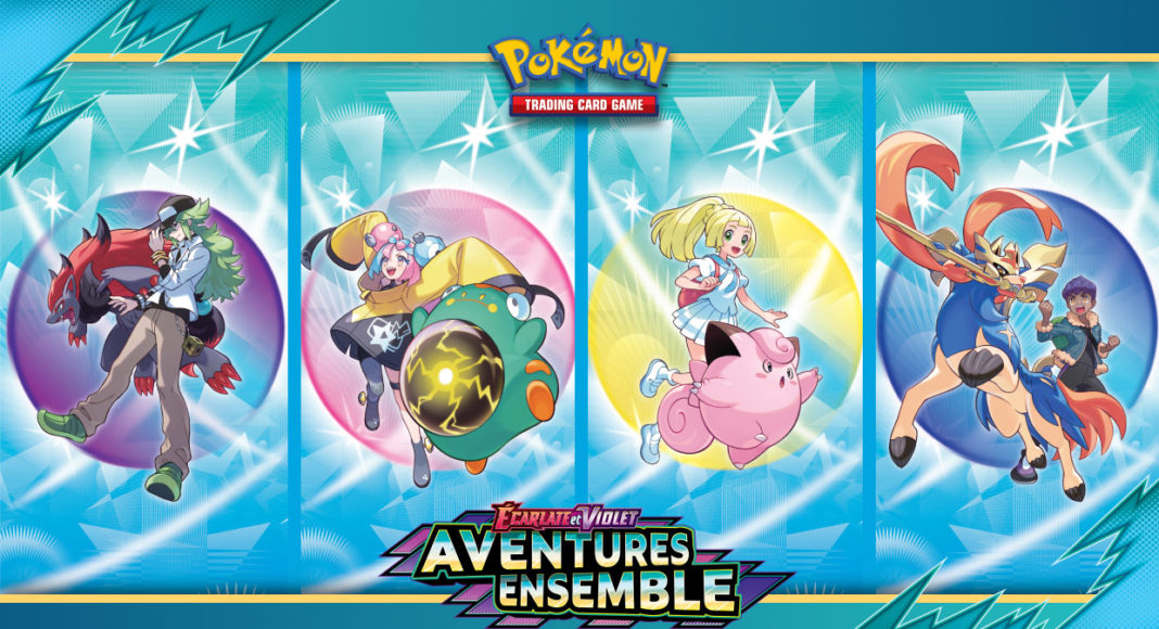 Les joueurs du JCC Pokémon, le jeu de cartes officiel, découvrent régulièrement de nouvelles extensions. En plus d’ajouter un paquet de nouvelles cartes à collectionner, elles permettent d’intégrer de nouveaux mécanismes de jeu. Après les extensions Couronne Stellaire et Étincelles, c’est au tour de l’extension Aventures ensemble de voir le jour. Cette dernière réintroduit notamment les Pokémon de Dresseurs et Dresseuses. Il y a pratiquement 25 ans, en août 2000, les joueurs nord-américains ont pu découvrir l’extension Gym Heroes de la série Wizards (issue d’une extension japonaise). Si nous parlons de celle-ci, qui n’a pas vu le jour en version francophone, c’est parce que c’était la première extension à introduire les Pokémon de Dresseurs et Dresseuses, avant d’apparaître ponctuellement dans des extensions promotionnelles. Ce n’est donc que cette année, avec la nouvelle extension Aventures ensemble que la mécanique de jeu est de retour. Quatre dresseurs sont en vedette, à savoir Mashynn, Lilie, N et Nabil. Les cartes en question disposent de quelques particularités. Une partie des Pokémon de N, le nom montrant le lien avec le Dresseur // Crédits : Geeko La première c’est que le Pokémon lié à un dresseur comporte le nom de ce dernier à côté de son nom. La seconde, c’est que l’image représentant le dresseur est ajoutée dans le coin inférieur droit de l’illustration. La dernière, et non des moindres, c’est que si un Pokémon de Dresseur peut évoluer, il faut avoir dans son jeu les deux Pokémon associés au Dresseur en question. Par exemple, pour pouvoir jouer l’Électrode de Mashynn, il faut d’abord jouer le Voltorbe de Mashynn et non un autre Voltorbe. Inversement, on ne peut pas faire évoluer le Voltorbe de cette dernière vers un autre Électrode que celui qui lui est associé. De quoi complexifier un peu l’élaboration de son deck. Autre point très appréciable, les cartes « illustrations rares » et « spéciales rares » mettent en avant la complicité entre le Pokémon et son dresseur. Un gros plus pour les collectionneurs, d’autant que les visuels sont superbes. Comme bien souvent, plusieurs artistes collaborent pour illustrer la collection complète de cette extension, composée de 159 cartes et 31 cartes secrètes, soit un total de 190 cartes. Plusieurs styles se côtoient, offrant divers rendus et ambiances. Ainsi, le calme et l’aspect mignon de Fragilady ou Poussacha tranchent avec l’agressivité marquée de Maganon ou de Grolem d’Alola. Certaines cartes sortent également du lot au niveau de leur style, comme Osselait, Sonistrelle, le Voltorbe de Mashynn, Kecleon ou encore Insolourdo. On pense également à l’illustration spéciale de Fouinar qui donne un rendu 3D assez réaliste qui tranche avec l’approche plus crayonnée du reste de la collection, à l’exception entre autres des cartes ex. Exemples de cartes dans leur version standard et leur version avec une illustration rare au superbe rendu // Crédits : Geeko Pour le reste, les habitués seront en terrain connu. Bien entendu, quelques Pokémon offrent des attaques intéressantes, comme Papilusion et son Ouragan Écaille qui permet de lancer 4 pièces et d’infliger 60 points de dégâts par côté face obtenu, avec en prime une paralysie infligée dès 2 côtés face obtenus. Plusieurs apportent un vrai plus au niveau de la stratégie. Nous n’allons pas tous les énumérer mais nous pouvons donner en exemple Braségali ex, l’évolution de Galifeu. Celui-ci se dote de 320 PV et permet d’infliger une attaque à 200 points avec seulement deux énergies, dont une feu. Bien sûr, en contrepartie, le Pokémon ne peut pas attaquer au tour suivant. Mais il est intéressant parce qu’il dispose en prime d’un talent permettant d’attacher une carte Énergie de base de sa pile de défausse à l’un de ses Pokémon. Certains Pokémon ont un Talent qui se révèle être un véritable atout stratégique // Crédits : Geeko Mammochon ex, l’évolution de Cochignon, n’est pas en reste avec ses 340 PV et son attaque Marche Grondante qui, elle-aussi en échange de deux énergies (terre en l’occurrence), inflige une attaque de 180 points avec en prime 40 dégâts supplémentaires pour chaque Pokémon de Niveau 2 sur votre banc. Quelques cartes Dresseur sont également utiles dans le cadre de stratégies ciblées sur la nouvelle mécanique de jeu. On pense notamment au Palais de N qui évite le Coût de Retraite aux Pokémon de N en jeu (des deux côtés). Même si Aventures ensemble n’est pas l’extension qui apporte le plus au système de jeu, elle permet surtout de mettre en avant les Pokémon de Dresseurs et Dresseuses. L’amitié tient ainsi un rôle principal qui se ressent dans certaines illustrations, notamment celles des cartes spéciales. Les artistes restent constants dans leur travail et livrent une nouvelle fois des visuels de qualité, mélangeant les styles et les ambiances. Les collectionneurs trouveront rapidement leurs cartes préférées. Quant aux tacticiens, ils cèderont aux sirènes de certains Pokémon qui ajoutent un aspect stratégique non négligeable, sans parler des cartes Dresseurs qui donnent notamment un avantage aux Pokémon de N et à ceux de Nabil. Comme toujours, les nouvelles cartes ont également été ajoutées au jeu vidéo JCC Pokémon Live.