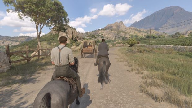 Attendue depuis des années, la suite de Mafia 3 n’est en réalité pas tant une suite mais davantage une préquelle. Mafia: The Old Country promettait de ramener la série Mafia à ses racines en misant tout sur la narration et en abandonnant la formule open world. Le moins que l’on puisse dire, c’est que les productions Hangar 13 ont tendance à diviser. Si Mafia: Definitive Edition (2020) a séduit par sa fidélité à l’original, Mafia III a divisé avec son monde ouvert répétitif et le récent reboot de Top Spin a reçu un accueil assez mitigé. Avec Mafia: The Old Country, le studio répond aux critiques des fans en abandonnant l’approche open world de Mafia 3 pour revenir à la formule linéaire des deux premiers opus, dans lesquels la narration était centrale. Le défi était clair : recréer l’atmosphère cinématographique qui a fait la renommée de la série tout en explorant une période inédite, la Sicile des années 1900. Votre monture vous permettra de vous déplacer sur toute l’île. Mafia: The Old Country nous plonge dans la Sicile de 1904, dans la ville fictive de San Celeste, où l’on suit Enzo Favara, un jeune homme vendu par son père pour travailler dans les dangereuses mines de soufre, avec son frère, qui y laissera sa vie. Après un effondrement dramatique, Enzo s’échappe et trouve refuge auprès de Don Torrisi, chef d’une famille mafieuse en conflit avec les Spadaro. L’histoire, qui s’étend sur plusieurs années, explore son ascension dans le crime organisé, mêlant loyauté, trahison et un amour interdit avec Isabella, la fille du Don. Et il faut bien reconnaitre que sur le plan narratif, Deck 13 réalise un sans faute : l’historie est prenante, les dialogues sont bien écrits, les personnages charismatiques, le doublage excellent et les cinématiques terriblement efficaces. The Old Country n’a rien à envier à une production hollywoodienne. Plusieurs histoires s’entrelacent ici et des thèmes forts sont portés, de la vengeance d’un frère aux rivalités familiales en passant par l’ascension d’un jeune mafieux, l’exploitation du peuple,… La seule course du jeu est l’un des moments forts de The Old Country. Mafia: The Old Country brille dans le mélange du narratif et de l’action, avec des cinématiques qui s’intègrent parfaitement dans les séquences de gameplay. Cela a bien sûr nécessité quelques changements dans le gameplay, comme l’abandon du monde ouvert du troisième opus pour une formule plus dirigiste. On n’est plus vraiment face à un jeu open world, même si The Old Country conserve certains éléments de cette formule. A la place, on se retrouve davantage face à un jeu d’action qui met l’accent sur la narration et mélange diverses séquences de jeu : combats au corps à corps, infiltration, gunfights, course… Les combats s’articulent autour d’un système de couverture typique des shooters des années 2010, et ça fonctionne plutôt bien même si on reprochera au titre un système de visée un peu vieillot. Les armes d’époque (revolvers, fusils à répétition, fusils à canon scié) offrent un feeling satisfaisant, renforcé par un sound design explosif. L’IA souffre aussi de quelques comportements incohérents. Ces séquences de jeu ne représentent toutefois pas le coeur du gameplay, tout au plus 10 à 15% des séquences de jeu. The Old Country brille en effet par sa diversité. A côté des gunfights, on retrouve des séquences de combat au couteau, des duels dans lesquels l’on alterne entre esquive, parade et attaques (coup, estoc, brise-garde). La mise en scène est dramatique, cinématographique même, elles se révèlent assez techniques avec le système d’esquive, de brise de garde et de parade, mais peuvent vite paraître répétitives, Deck13 ayant eu la mauvaise idée d’en glisser une en moyenne par chapitre. Entre des séquences d’action, on découvre quelques scènes de vie en Sicile rurale. Les séquences de furtivité sont sans doute celles qui diviseront le plus les foules. Les missions imposent souvent des séquences où être repéré entraîne un échec immédiat. L’ennui, c’est que ces séquences de jeu sont beaucoup trop simples : les gardes suivent des tracés très prévisibles, les nombreux objets de distraction comme les bouteilles facilitent encore davantage la tâche du joueur, et il est possible de se débarrasser de chaque garde en l’étranglant. Ca aurait pu être un vrai atout pour le jeu mais en l’état, ces séquences trop rudimentaires permettent juste de varier (un peu) les plaisirs. Elles sont toutefois loin d’être mauvaises, juste pas au niveau du reste de la production. Le jeu propose également quelques séquences de courses et courses-poursuites très réussies, à pied, à cheval ou en voiture, des séquences encore une fois très cinématographiques et qui fonctionnent plutôt bien, même si on aurait aimé en retrouver davantage. On dénombre en effet une seule course en voiture, qui est l’un des moments forts du jeu… Pour le reste, c’est à 50% du narratif, avec des cinématiques très visuelles, d’excellents dialogues et quelques interactions avec les PNJ sur le côté. Et c’est là que le jeu surprend le plus avec des personnages secondaires très attachants, des enjeux captivants et une intrigue qui ne cesse à gagner en intensité. The Old Country réalise une petite prouesse à ce niveau en faisant mieux que son ainé. Passons à présent à l’open world. Car oui, il y en a malgré tout un… sous-exploité. L’approche narrative semble avoir contraint Deck13 à se concentrer sur des passages linéaires, dans un monde ouvert au potentiel énorme qui est malheureusement sous-exploité. Il n’aurait pas été de refus d’avoir accès à quelques missions additionnelles comme des courses de véhicules, de chevaux ou des missions d’élimination dans l’open world en question. Clairement, c’