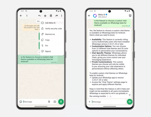 Comme tous les mois, grâce notamment à Wabetainfo, il est possible d’estimer les nouveautés qui seront ajoutées à WhatsApp au cours du mois suivant. En septembre, il faudra s’attendre à plusieurs nouvelles fonctionnalités. Certification de compte, ajouts pour les appels, système pour briser la glace et plus, on fait le point. Une option pour lancer une discussion Depuis la bêta 2.25.21.24 de la version Android de WhatsApp, certains utilisateurs peuvent utiliser une suggestion pour lancer une discussion. Un émoji signe de main apparaît ainsi pour aider à briser la glace. Ce signe universel semble plus simple pour nouer le contact que de réfléchir au message à envoyer, comme “Bonjour”, “Hello”, “Salut”, etc. Cette nouvelle option sera prochainement déployée auprès du plus grand nombre. Ajout de l’emoji signe de main pour initier une conversation individuelle // Crédits : Wabetainfo Ajout d’un mode nuit pour prendre une photo Pour éviter de prendre une photo avec la caméra de son appareil et ensuite de faire quelques manipulations pour l’ajouter à une conversation, il est plus aisé d’utiliser directement le mode photo intégré à l’application. Dans la version bêta 2.25.22.2, WhatsApp a ajouté un mode nuit symbolisé par une lune à côté de l’icône pour le flash. Celui-ci vise à optimiser le rendu des photos lorsqu’on tente de prendre un cliché dans un environnement avec de mauvaises conditions d’éclairage. Cela permet de capturer plus de détails et de réduire le bruit de la photo grâce à un ajustement de la clarté et de la luminosité. Ajout d’un mode nuit à la fonction caméra de WhatsApp // Crédits : WabetaInfo Les appels évoluent : notification de rappel et message vocal WhatsApp travaille ces derniers temps sur l’amélioration de l’expérience liée aux appels. Après les nouveaux outils récemment déployés, pratiques lors des conversations de groupe, deux autres nouveautés vont arriver. Jusqu’à présent, si vous appelez un interlocuteur mais que ce dernier de répond pas, il reçoit un simple message signalant l’appel manqué. Bien entendu, si quelqu’un vous appelle sans que vous ne répondiez, c’est vous qui recevez la notification d’appel en absence. Prochainement, dans ce dernier cas, vous serez en mesure de créer une notification de rappel. Ainsi, vous pourrez définir de recevoir cette dernière 2 heures, 8 heures ou 24 heures plus tard. Le délai peut être également personnalisé pour les plus pointilleux. Dans tous les cas, cela permet de ne pas oublier de rappeler la personne qui a souhaité vous joindre en déterminant le moment le plus opportun pour le faire. Tous les détails sont indiqués sur cette page. Option pour créer une notification de rappel après un appel manqué sur WhatsApp // Crédits : Wabetainfo En plus de cela, WhatsApp prépare une nouvelle possibilité : celle de laisser un message vocal suite à un appel qui n’aboutit pas. Cela évite ainsi de revenir à la discussion avec l’interlocuteur avant d’appuyer sur l’icône du micro pour laisser une note vocale. L’accès est plus direct. La fonction a été ajoutée à la version bêta 2.25.23.21 et sera déployée plus largement dans les prochaines semaines. Ajout d’une option pour laisser un message vocal après un appel sans réponse // Crédits : Wabetainfo Intégration des échanges vocaux avec Meta AI Depuis l’intégration de Meta AI à WhatsApp, l’entreprise américaine cherche à renforcer son utilisation. Dernièrement, des bêta testeurs, aussi bien sur Android que sur iOS, ont pu découvrir une nouvelle possibilité. En plus de converser avec le chatbot à l’écrit, ils peuvent lancer des échanges vocaux. Il suffit pour cela de cliquer sur l’icône de Meta AI en forme de vague, du moins après avoir activé l’option. Cela fonctionne aussi bien à partir de l’onglet Discussions qu’à partir de celui des Appels. WhatsApp propose en prime quelques suggestions pour aider l’utilisateur à lancer la conversation. Ajout des échanges vocaux avec Meta AI dans WhatsApp // Crédits : Wabetainfo Mise en place d’outils pour lutter contre les arnaques Plus les arnaqueurs multiplient les canaux pour diffuser leurs tentatives d’escroqueries, plus ils ont des chances de ferrer des victimes. Afin de minimiser les risques que ses utilisateurs se retrouvent dans une telle situation, WhatsApp a décidé d’agir. Ainsi, il déploie des outils pour aider ces derniers à être vigilants. Cela passe par l’ajout d’un écran de sécurité lors de l’ajout à une conversation de groupe, du moins si le contacte qui vous ajoute n’est pas dans votre liste. Des mesures pour les conversations individuelles sont également à l’étude. Tous les détails sont indiqués ici. Crédits : Meta L’aide à l’écriture fait ses débuts Si vous avez des difficultés à formuler vos messages ou que vous craignez les fautes d’orthographe ou de syntaxe, Meta AI va vous venir en aide. En effet, WhatsApp déploie actuellement une assistance pour l’écriture des messages. Dès que vous écrivez trois ou quatre mots, l’icône des stickers laisse sa place à une icône avec un stylo. Tapotez dessus et vous pourrez profiter des suggestions de Meta AI pour améliorer la clarté, la structure ou le ton du message en cours d’écriture. Nous vous invitons à lire tous les détails concernant cette nouveauté dans cet article. Ajout d’une assistance à l’écriture sur WhatsApp // Crédits : Wabetainfo Une certification pour vérifier le lien vers le compte Instagram Actuellement, sur votre profil WhatsApp, vous avez la possibilité d’associer un lien menant vers un compte Instagram. Néanmoins, vous pouvez pointer vers n’importe quel compte, que ce dernier vous appartienne ou non. Avec le système de certification en cours de mise en place, Meta permet à ceux qui le souhaitent de vérifier le compte