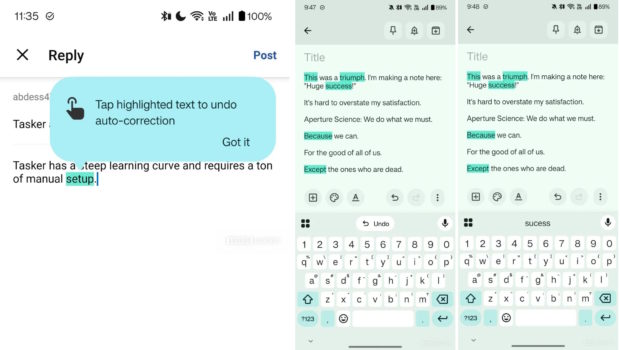 Google déploie un nouvel outil pour son clavier numérique. Celui-ci permet d’identifier les corrections automatiques appliquées par le Gboard. L’utilisateur a ainsi le choix de les conserver ou de revenir au mot initialement écrit. Pour écrire leurs messages, recherches et autres, les utilisateurs de smartphone sous Android utilisent le Gboard. Le clavier numérique de Google dispose d’une fonction de correction automatique plutôt pratique. Néanmoins, il arrive souvent que celle-ci ajoute une correction indésirable. En écrivant un peu vite, sans relecture, on envoie le message et c’est trop tard. Parfois, cela induit un sens cocasse, d’autres fois, la correction ajoute une interprétation allant à l’inverse de ce que l’on souhaitait dire. Comme le reporte Android Authority, Google va apporter plus de flexibilité au système. En effet, une nouvelle mise à jour en cours de déploiement introduit un nouvel outil. Crédits : Android Authority Ce dernier apparaît dès que l’utilisateur a terminé d’écrire une phrase. Ainsi, il surligne les mots qui ont été automatiquement corrigés dans la phrase. En tapotant dessus, Google affiche le mot tel qu’il a originellement été écrit. L’utilisateur a alors le choix de conserver la correction ou de tapoter une fois de plus afin d’annuler la correction automatique. De quoi éviter de devoir appuyer sur la touche retour pouvant ajouter plus d’erreurs qu’elle n’en corrige.