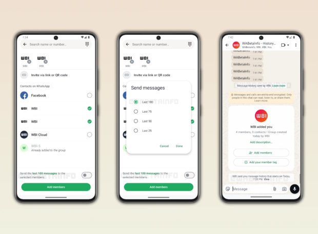 WhatsApp est sans cesse en évolution. Meta introduit régulièrement de nouvelles fonctionnalités, voire en ajuste d’autres. En décortiquant les versions bêtas déployées, Wabetainfo permet d’envisager les nouveautés à venir. Recherche de stickers améliorée Crédits : Wabetainfo Les stickers représentent une alternative aux emojis pour traduire simplement une idée, un sentiment ou un contexte. Afin de trouver celui qui correspond le mieux à la situation, l’utilisateur peut passer un petit temps à scroller. Pour éviter cela, il est toujours possible d’opter pour les récents utilisés qui sont affichés. Dans les prochaines semaines, WhatsApp ajoutera un filtre supplémentaire. Ainsi, la personne qui le souhaite pourra filtrer les stickers selon un thème, que ce soit pour dire bonjour OU exprimer le rire, l’amour, la tristesse ou encore la surprise. Comme vous pouvez le voir sur l’image ci-dessus, ce filtre prendre la forme de pilules alignées de manière horizontale. Chacune comprend un mot explicite lié au thème et un emoji pour éviter toute confusion. Partage de l’historique avec les nouveaux membres d’un groupe Crédits : Wabetainfo Lorsqu’un membre rejoint un groupe, ce dernier n’a pas connaissance de tous les messages qui ont été postés avant son arrivée. Cela peut donc pousser les membres déjà présents à réitérer lesdits messages. De quoi alourdir la discussion pour ceux qui les ont déjà lus. Pour le nouveau membre, l’absence des messages antérieurs peut entraîner un manque de contexte pour percevoir tout le sens d’une réponse postée après son intégration. Ainsi, pour éviter ces situations, WhatsApp a commencé à déployer la possibilité de partager l’historique des messages du groupe. Jusqu’à 100 messages peuvent être partagés, à condition que ces derniers aient été écrits durant les 14 jours qui précèdent l’arrivée du nouveau membre. Ce partage de l’historique comporte une option pour ajuster le nombre de messages à envoyer. L’utilisateur peut ainsi n’en partager que 25, 50 ou 75. Ajout des stickers de texte et étiquettes de membre du groupe WhatsApp a officiellement introduit deux nouveautés pour les utilisateurs début janvier. Leur déploiement étant progressif, plusieurs personnes y auront accès au cours de ce mois-ci. La première, c’est la possibilité de transformer n’importe quel texte en sticker. La seconde, c’est celle de permettre l’identification de tout membre d’un groupe grâce à une étiquette personnalisée. Ainsi, plutôt que de prendre quelques secondes pour identifier qui est qui par rapport à la combinaison nom et prénom, l’étiquette donne de suite une information claire. Untel est le comptable, untel est le coach sportif, etc. Affichage des recherches récentes Crédits : Wabetainfo Pour faciliter la recherche d’un contact ou d’un groupe, WhatsApp ajoute un historique des recherches directement à l’outil de recherche de l’onglet Discussions. Concrètement, il suffit d’appuyer dans la pilule “Demander à Meta AI ou rechercher”. La fenêtre contextuelle habituelle va s’ouvrir. En plus des suggestions de recherche, elle va désormais afficher les recherches récentes. Cela donne ainsi un accès plus rapide à ces dernières. Comme toujours, la fonctionnalité étant en cours de déploiement, certains ne pourront l’utiliser que dans les prochaines semaines. Protection stricte du compte Afin de renforcer la protection d’un compte WhatsApp, Meta a ajouté une option baptisée “Paramètres de compte stricts”. Celle-ci active tous les paramètres les plus restrictifs. Le fonctionnement de l’application est plus limité mais cela protège le compte d’attaques sophistiquées. Bien entendu, cette nouvelle fonctionnalité vise avant tout les cibles privilégiées par les pirates informatiques, comme les personnalités publiques ou encore les journalistes. Plus de précisions sont à découvrir dans cet article.