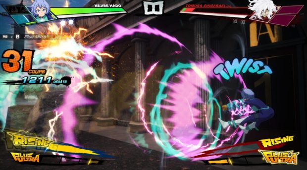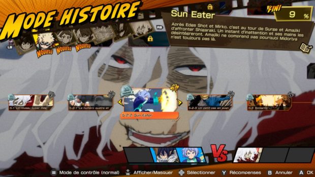 Déjà adaptée à plusieurs reprises en jeux vidéo, la série des My Hero Academia n’avait toutefois jamais eu droit à un portage brillant. Namco Bandai change la donne avec All’s Justice, qui est proprement le meilleur jeu tiré de la franchise à ce jour. Six ans après My Hero One’s Justice 2, Namco Bandai nous livre enfin une nouvelle adaptation du célèbre manga. Certes, les fans avaient eu droit à un jeu F2P entre temps, mais celui-ci n’avait pas vraiment marqué les esprits. All’s Justice change la donne. Le jeu a été développé par le même studio que celui qui nous avait livré les deux premiers One’s Justice et la très mauvaise adaptation de Jujutsu Kaisen. Il y avait donc de bonnes raisons d’être inquiet. Visiblement, le studio s’est toutefois donné le temps et surtout les moyens de réussir. En gestation depuis trois longues années, le nouveau My Hero Academia est un projet beaucoup plus ambitieux que les précédents. Le jeu intègre un mini open-world, malheureusement pas très intéressant. Plus ambitieux tout d’abord parce que le titre propose un mode solo costaud, avec un mini open world qui va faire office de lien entre l’histoire du chapitre Final War, et les batailles iconiques de la franchise, que le studio nous propose de revivre ici à travers des combats uniques. L’open world n’est en soi pas très intéressant, les interactions sont minimalistes, la zone de jeu toute petite et le level-design pauvre, c’est davantage un menu qu’un vrai mode de jeu, mais il a le mérite de joliment lier les différents éléments du jeu. All’s Justice met aussi les petits plats dans les grands pour nous proposer un divertissement prenant pour les fans, avec de nombreux extraits de l’animé qui viennent entrecouper les séquences de combat et une mise en scène des affrontements beaucoup plus travaillée que par le passé. Et c’est sans doute là que se situe la plus belle évolution par rapport aux anciens My Hero, avec de surcroit un système de combat revu qui mise tout sur le “tag battle”. Les combats vous feront enchainer des affrontements en 3 contre 1, 1 contre 3, 3 contre 3 et de nombreuses autres configurations. Et ça fonctionne plutôt bien, d’autant plus que le switch des personnages est très facile. Globalement, le titre est d’ailleurs très accessible. Le gameplay se réduit à quelques combinaisons de boutons : deux boutons pour les alters, un pour sauter, un pour rusher, un pour parer et un pour attaquer. Globalement, ça fonctionne plutôt bien même si ça reste un peu trop simpliste pour vraiment convaincre les amateurs de jeux de baston. Rappelons le, on est toutefois sur un style de jeu de combat très différent d’un Tekken, avec des affrontements qui se jouent “en 3D” dans des arènes destructibles. Vos héros pourront s’élever dans les airs, se diriger à 360 degrés… Le mode histoire est entrecoupé d’extraits de la série. Et c’est sans doute là que réside le plus gros défaut du titre : le level-design est d’une pauvreté déconcertante. Quand on ne joue pas dans des niveaux totalement vides, on se retrouve dans des environnements ternes et moches. Aucun travail n’a été réalisé sur les environnements, certes partiellement destructibles, mais qui n’ont ni âme ni impact sur les batailles. Ajoutez à cela un gameplay qui a été simplifié à l’extrême avec même un système de commandes qui permet d’automatiser les attaques (sic) et vous comprendrez que malgré quelques bonnes intentions, le jeu aura du mal à convaincre les vrais amateurs de baston. La mise en scène des combats est travaillée. Pour les fans en revanche, ce nouveau My Hero joue brillamment la carte du fan-service, avec un scénario joliment narré, un casting presque complet, des combats d’anthologie et un character design fidèle. Ce All’s Justice ne marquera sans doute pas l’histoire du jeu vidéo mais il n’en reste pas moins une adaptation solide d’un animé qui a enfin droit à la reconnaissance qu’il méritait. Avec ses modes de jeu en ligne, son mode Histoire, ses combats d’anthologie et son mini open world, All’s Justice vient en tout cas avec une proposition forte qui surprendra agréablement les fans, à défaut de convaincre les amateurs de jeux de baston. Conclusion Avec All’s Justice, Namco Bandai livre une adaptation très réussie de l’animé My Hero Academia et plus particulièrement de l’arc Final War. C’est un jeu de combat en arènes solide, qui offre un contenu riche et une mise en scène soignée. Pour les fans, c’est la meilleure adaptation sortie à ce jour. Plutôt généreux au niveau de son contenu avec ses modes de jeu en ligne, son mode histoire accrocheur et ses combats d’anthologie, le titre parvient à offrir un divertissement plaisant, malgré la pauvreté de ses arènes et la simplicité de son système de combat. Assurément une bonne surprise.