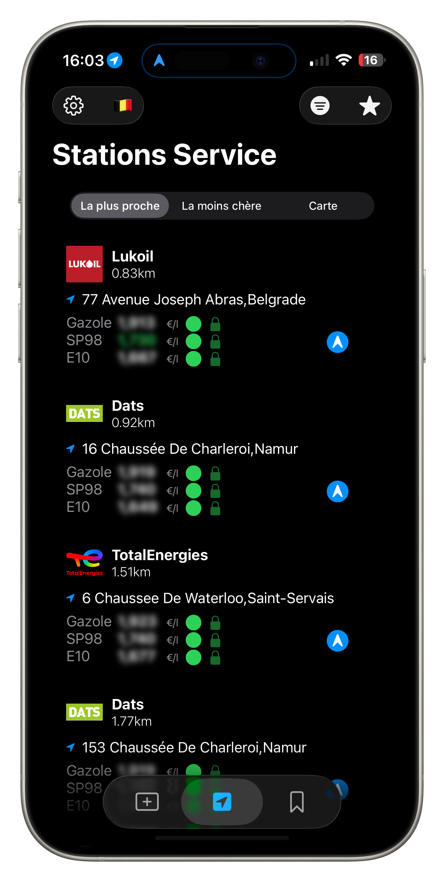 La hausse du prix du carburant pousse de nombreux automobilistes à chercher les stations les moins chères. Plusieurs applications permettent de comparer les prix autour de soi en quelques secondes. La flambée des prix du carburant est l’une des conséquences surprenantes du conflit au Proche-Orient entre l’Iran et l’alliance USA/Israël. En réponse aux multiples bombardements de l’armée américaine sur son territoire, la république islamique a fermé le détroit d’Ormuz, par lequel transitent des millions de barils de pétrole chaque jour, pétrole qui finit sa route dans nos stations essence. En moins d’une semaine, le litre de diesel et d’essence a pris 20 centimes, de quoi alourdir le prix du plein d’une dizaine d’euros supplémentaires. S’il n’existe malheureusement pas de recette miracle pour retrouver les prix de la mi-février, il est toutefois possible de trouver où le carburant est le moins cher. Et pour cela, direction votre smartphone ! Fillzz (Play Store & App Store) Fillzz est la référence du suivi du prix du carburant sur smartphone dans une vingtaine de pays, et notamment en Belgique. Dotée d’une interface moderne est épurée, est considéré comme l’une des apps les plus complètes pour trouver du carburant. Elle repose sur une base de données officielle des prix du carburant, mais aussi et surtout sur les signalements des utilisateurs. Dès l’ouverture de l’app, elle propose une carte avec les stations-service les plus proches et le prix des différents carburants. Elle permet de mettre des stations en favori, d’encoder son véhicule pour que ne soit affiché que le carburant qui vous intéresse ou encore de recevoir des alertes de prix. Si vous repérez une station, l’app vous guide même jusqu’à elle avec une navigation intégrée. Une version Premium est bien entendu disponible moyennant un abonnement mensuel de 9,99€ ou annuel de 49,99€. Cet abonnement donne accès aux notifications, à l’accès illimité dans chaque pays, aux widgets, à CarPlay (iPhone) ou encore au calcul du prix des péages dans chaque pays. La version gratuite est toutefois suffisante si vous souhaitez profiter des fonctions de base et de la carte avec les différents prix. Gasoil Now (App Store & Play Store) Gasoil Now se base, elle, uniquement sur les signalements des automobilistes, contrairement à la France où elle va piocher les informations dans la vaste base de données du gouvernement. De nombreux pays ont d’ailleurs une base officielle de prix, la Belgique n’en a pas. Mais Gasoil Now a l’avantage de disposer d’une interface extrêmement claire et de fonctionner sur un principe très simple. L’app détecte la position de l’utilisateur, affiche les stations autour de lui, lui montre les prix du carburant et lui permet même de trier les stations par distance ou prix. De nombreux carburants sont pris en charge, à savoir SP95/E10, SP98, diesel, LPG, E85, CNG et AdBlue. L’application est entièrement gratuite, si ce n’est que vous pouvez payer 1€ par an pour vous débarrasser des publicités. Essence – Prix Carburants (App Store) Uniquement disponible sur iPhone, Essence – Prix Carburants va droit au but. Elle propose trois principales fenêtres, à savoir les signalements de prix à la pompe, les stations-service basées sur trois critères (les plus proches, les moins chères et sur la carte) et une fenêtre de budget/mois. Le seul véritable souci, c’est que tous les prix sont floutés et qu’il faut payer pour y avoir accès. Les prix ne sont pas bien élevés, comptez 1,19€ par mois et 6,99€ pour l’année, mais c’est un coût supplémentaire à prendre en compte. Il est toutefois possible de “deviner” les prix en regardant attentivement le floutage, pas très important. Bonus : Waze Totalement gratuite, Waze est principalement connu pour ses fonctions très avancées en matière de navigation. Mais ce que peu de gens savent, c’est qu’elle indique les prix à la pompe pour une majorité de stations. Les prix sont mis à jour par les automobilistes, et la base de données est très complète, surtout en Belgique. En recherchant un itinéraire dans la barre de recherche, l’onglet Carburant apparaît dans le haut de la fenêtre. Appuyez dessus et la carte vous montrera toutes les stations à proximité ou sur votre trajet.