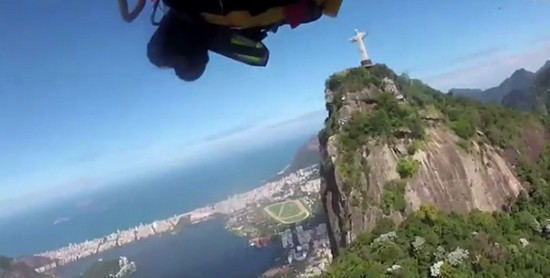 Jetman survole la baie de Rio avec ses ailes